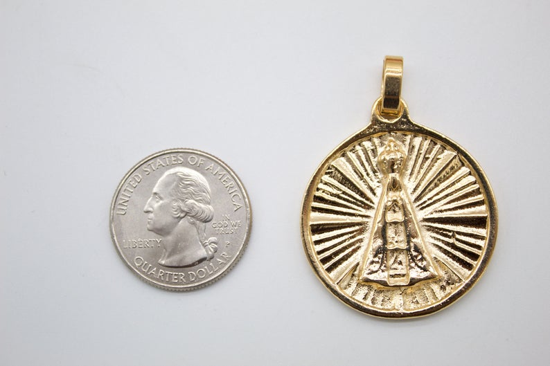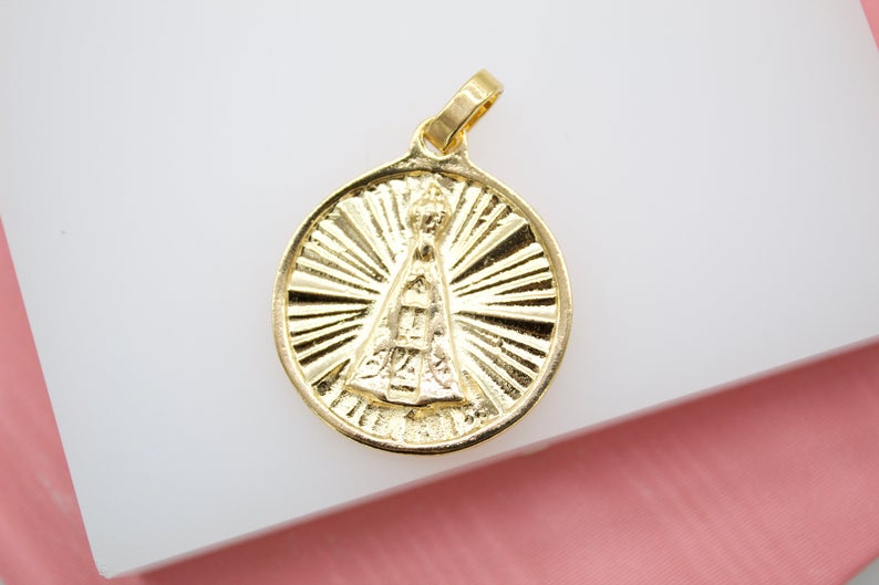 Elevate your collection with our Saint Virgin Mary Medal Pendant, crafted from high-quality gold-filled material.