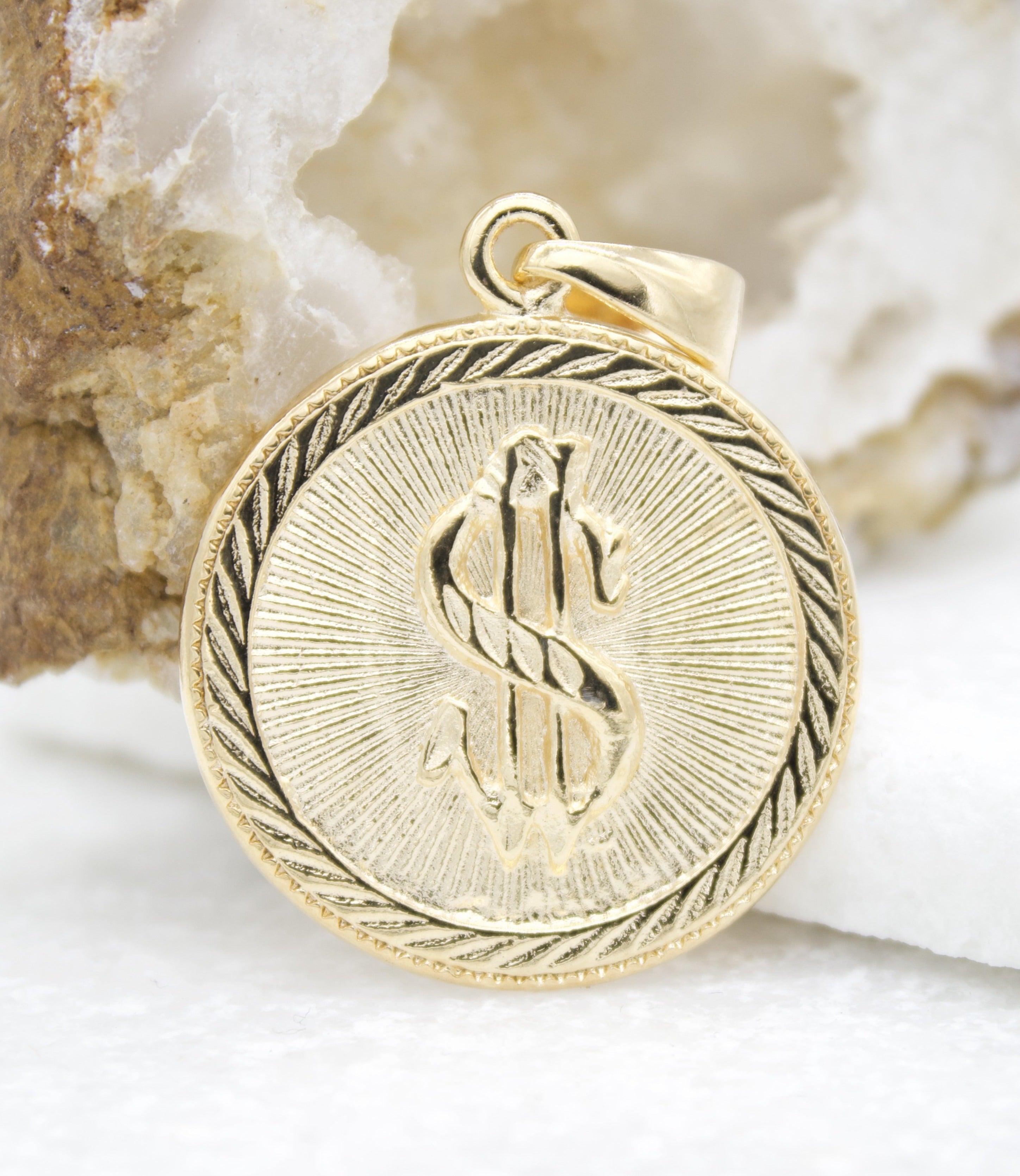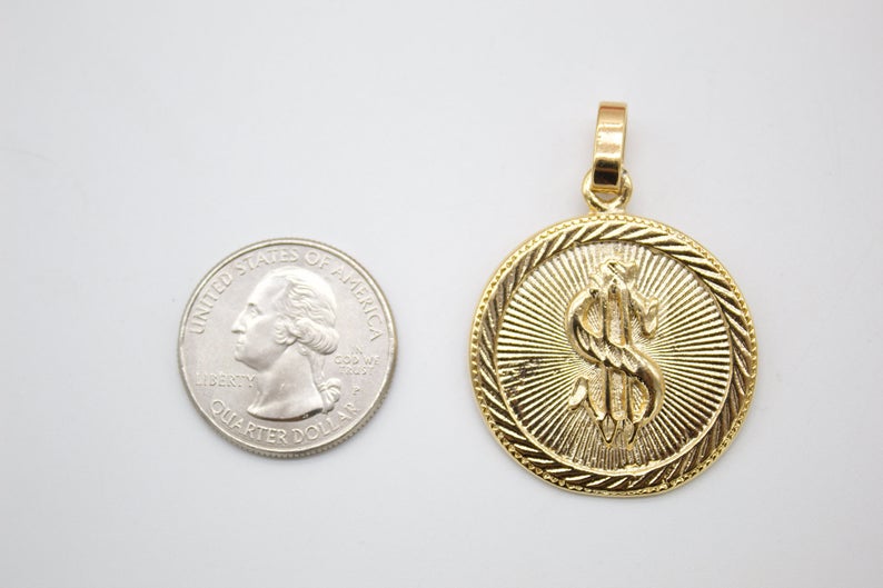 18k Gold Filled Unique Money Dollar Coin Medallion Medal Pendant (A128)