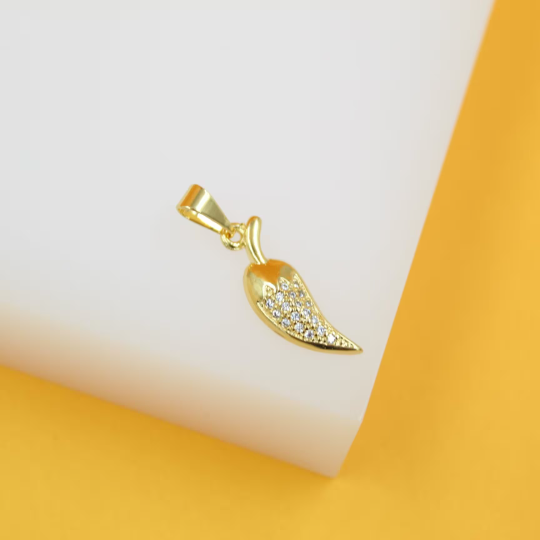 18k Gold/Rhodium Filled Designed Chili Pepper CZ Pendant