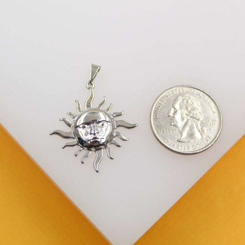 18K Rhodium Filled Dainty Celestial Sun Charm Pendant (A158)