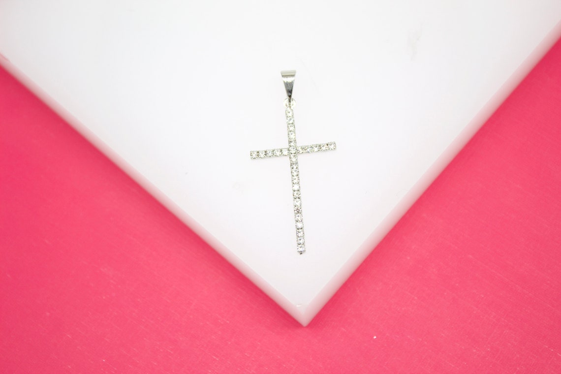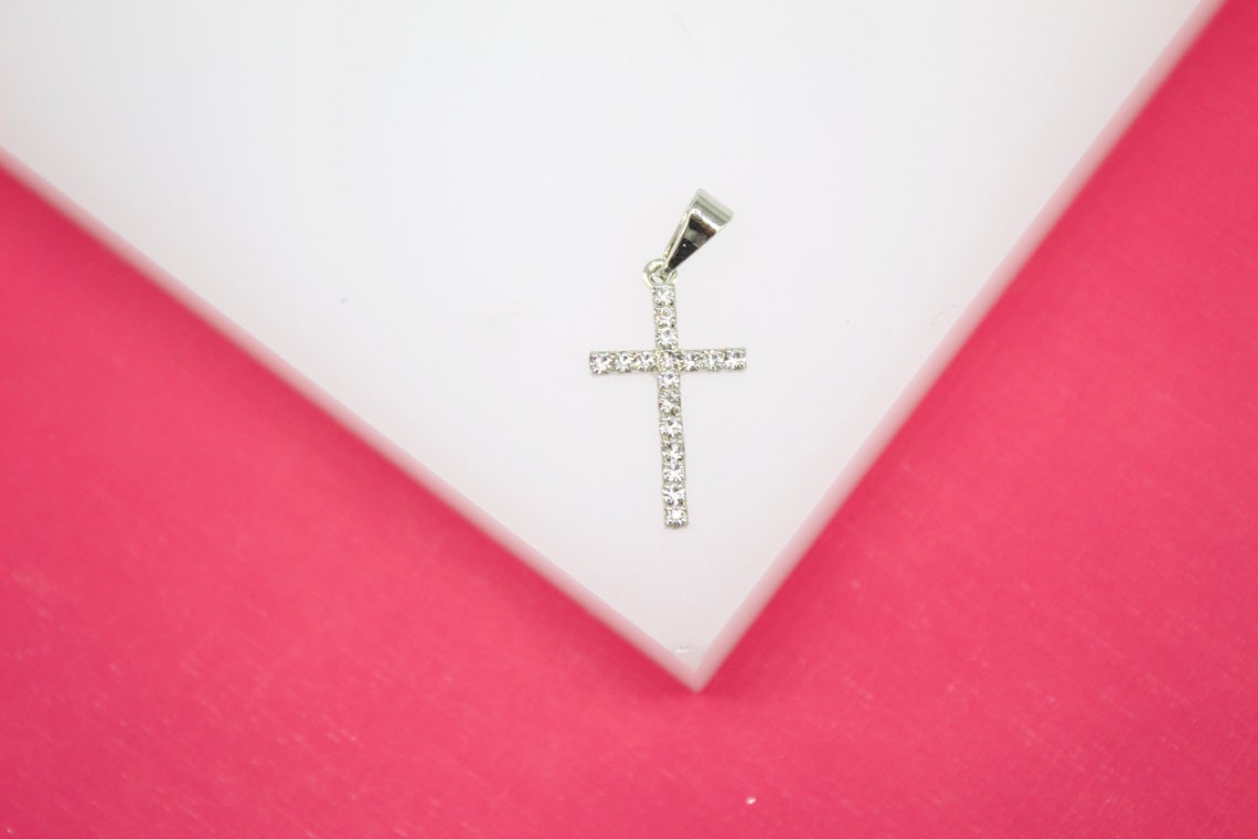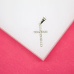 Rhodium Filled Small Round CZ Cross Pendant (A148)