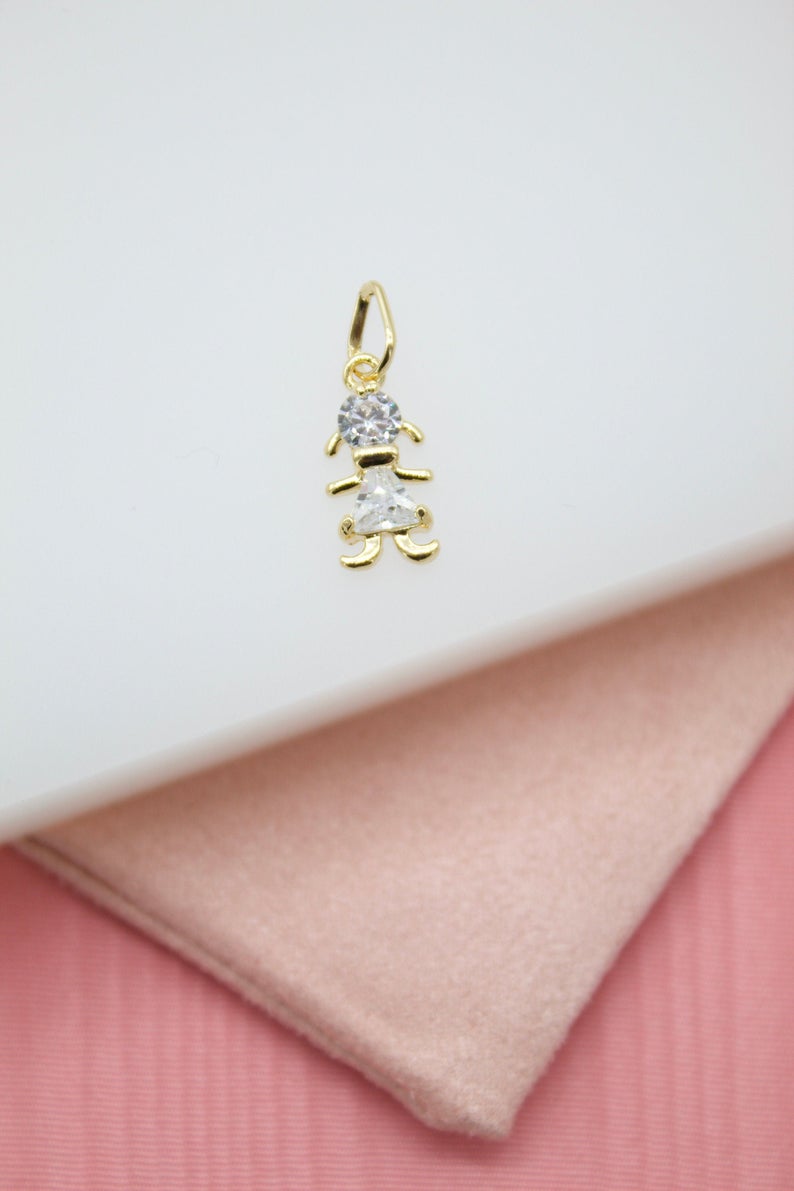 This Clear CZ Stone Boy & Girl Pendant features finely crafted cubic zirconia stones that capture light with every movement. Designed with elegance and subtlety, it offers a refined symbol of connection and charm, perfect for adding a sophisticated accent to your everyday or special occasion ensemble.