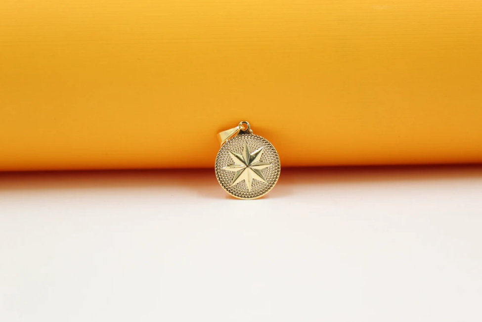 Compass Star Medallion Pendant For 18K Gold Filled (A246)