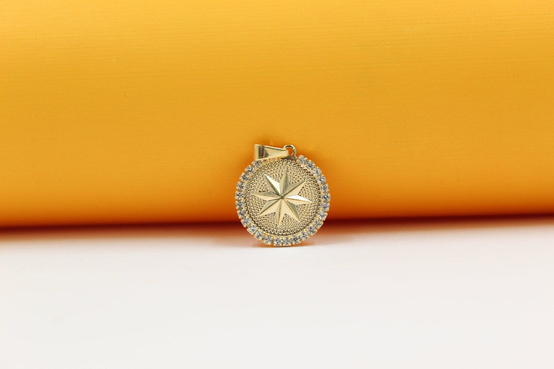 Compass Star Medallion With Zirconia Stones Pendant For 18K Gold Filled (A244)
