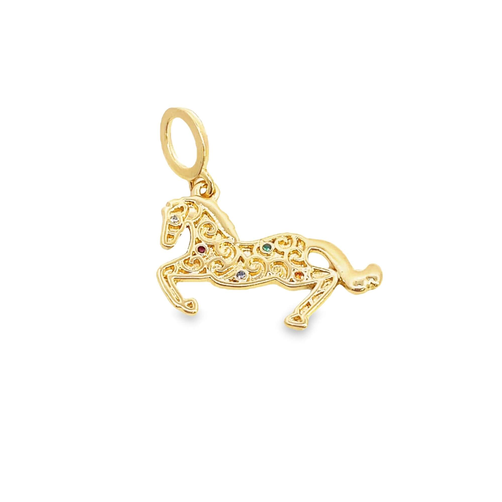 18k Gold Filled CZ Scroll Pattern Horse Pendant