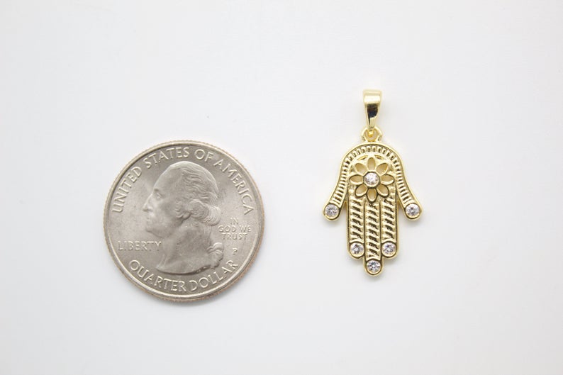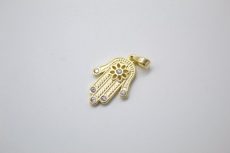 Dainty Gold Hamsa Hand Charm 18k Gold