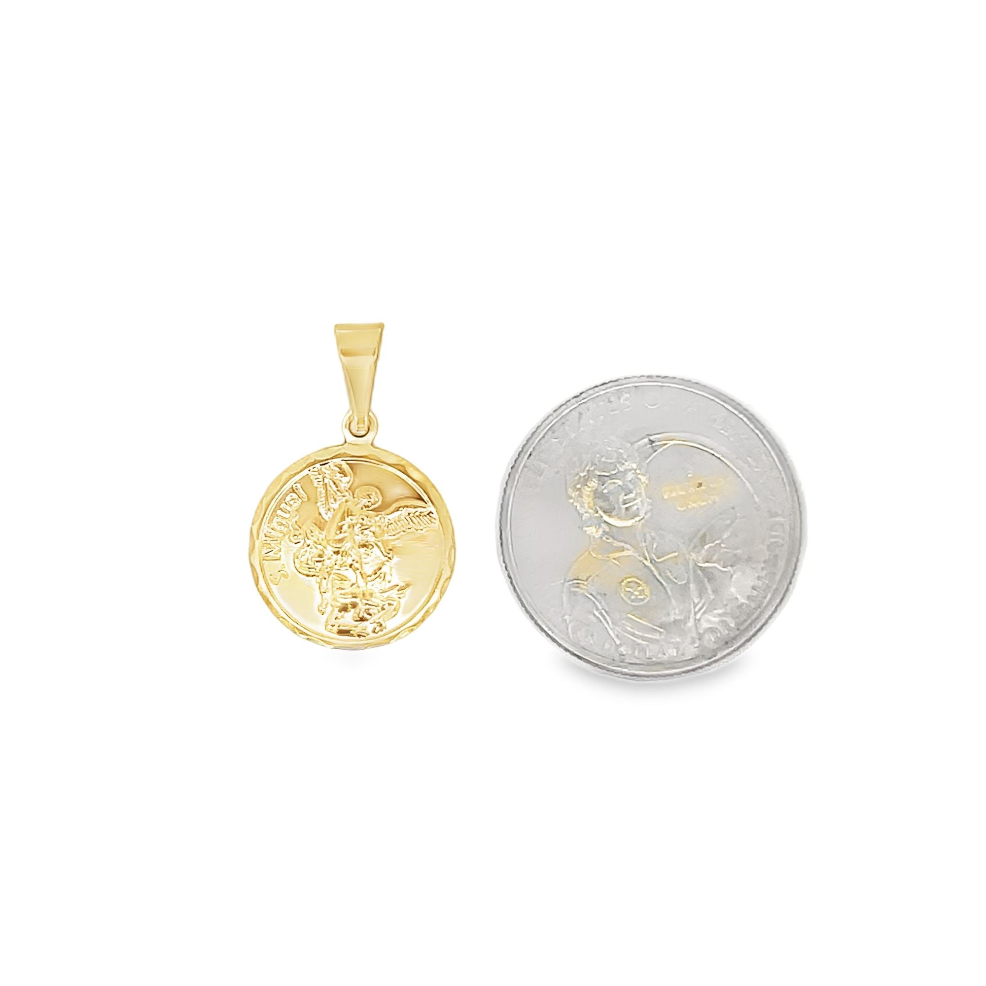 Elevate your collection with the Saint Michael pendant, beautifully crafted from gold-filled material. Measuring 19mm x 17mm, this elegant piece is perfect for personal wear or resale opportunities.