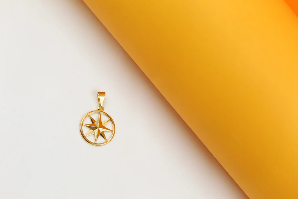 Outlined Compass Star Medallion Pendant For 18K Gold Filled