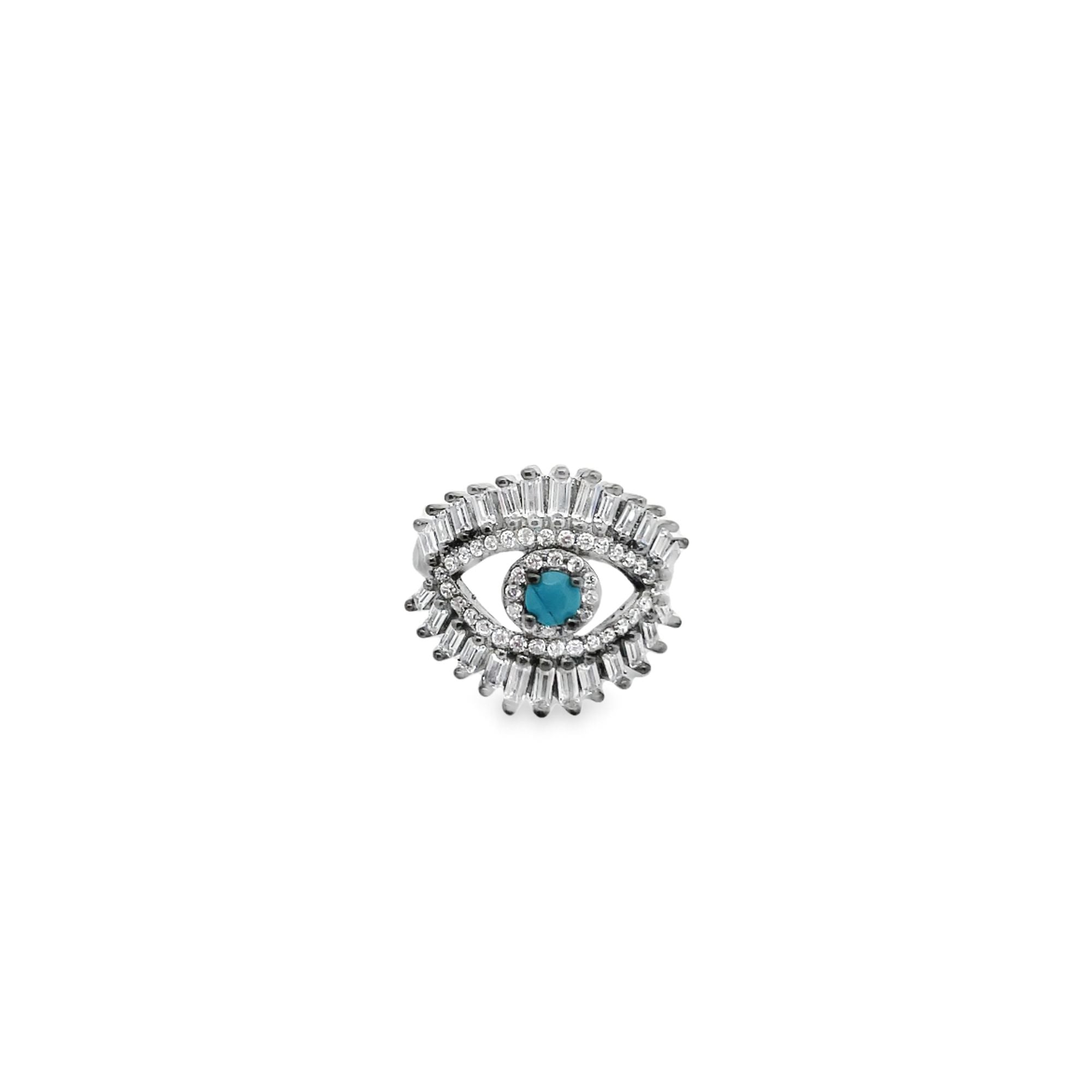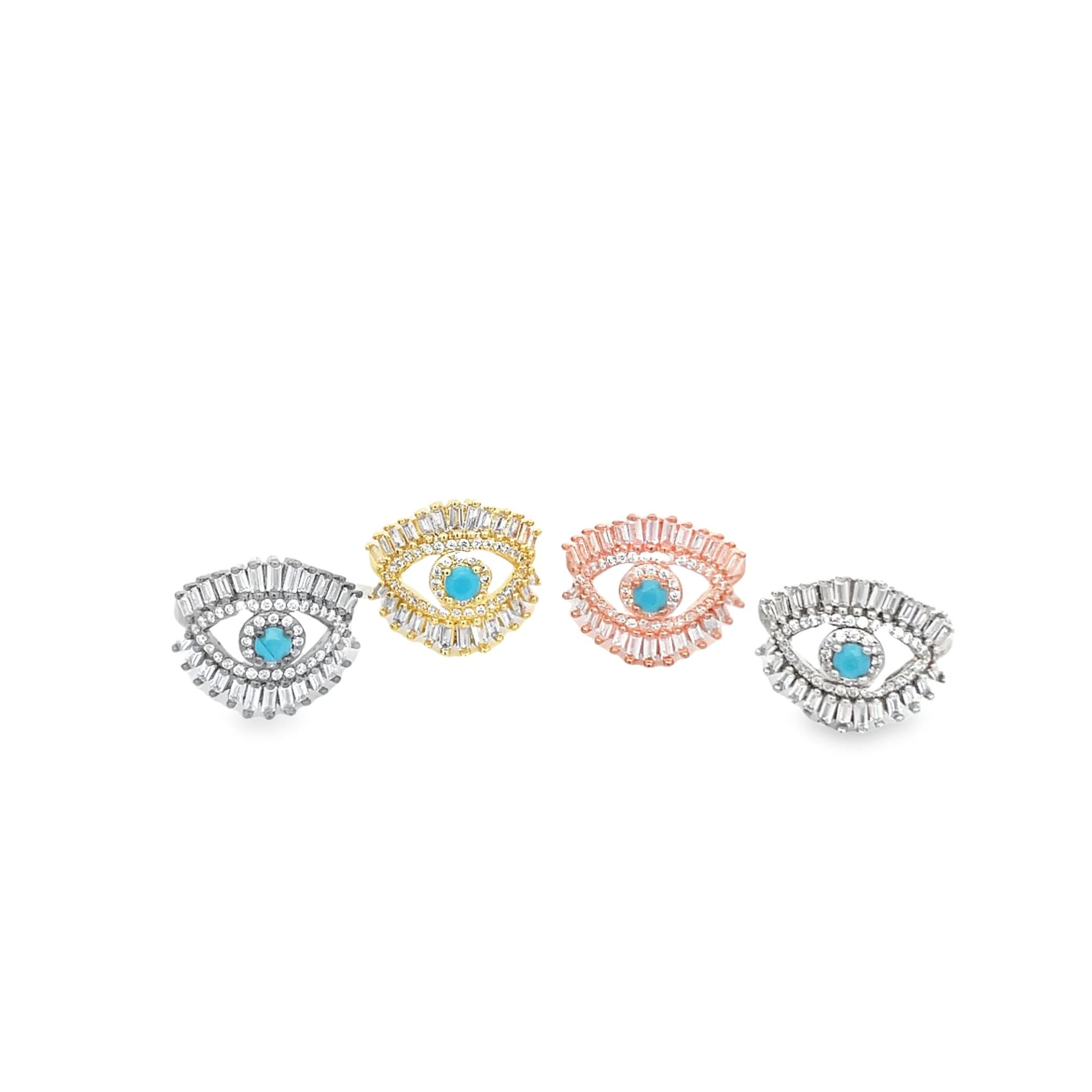 Evil Eye Ring With Baguette CZ Stones (D57)