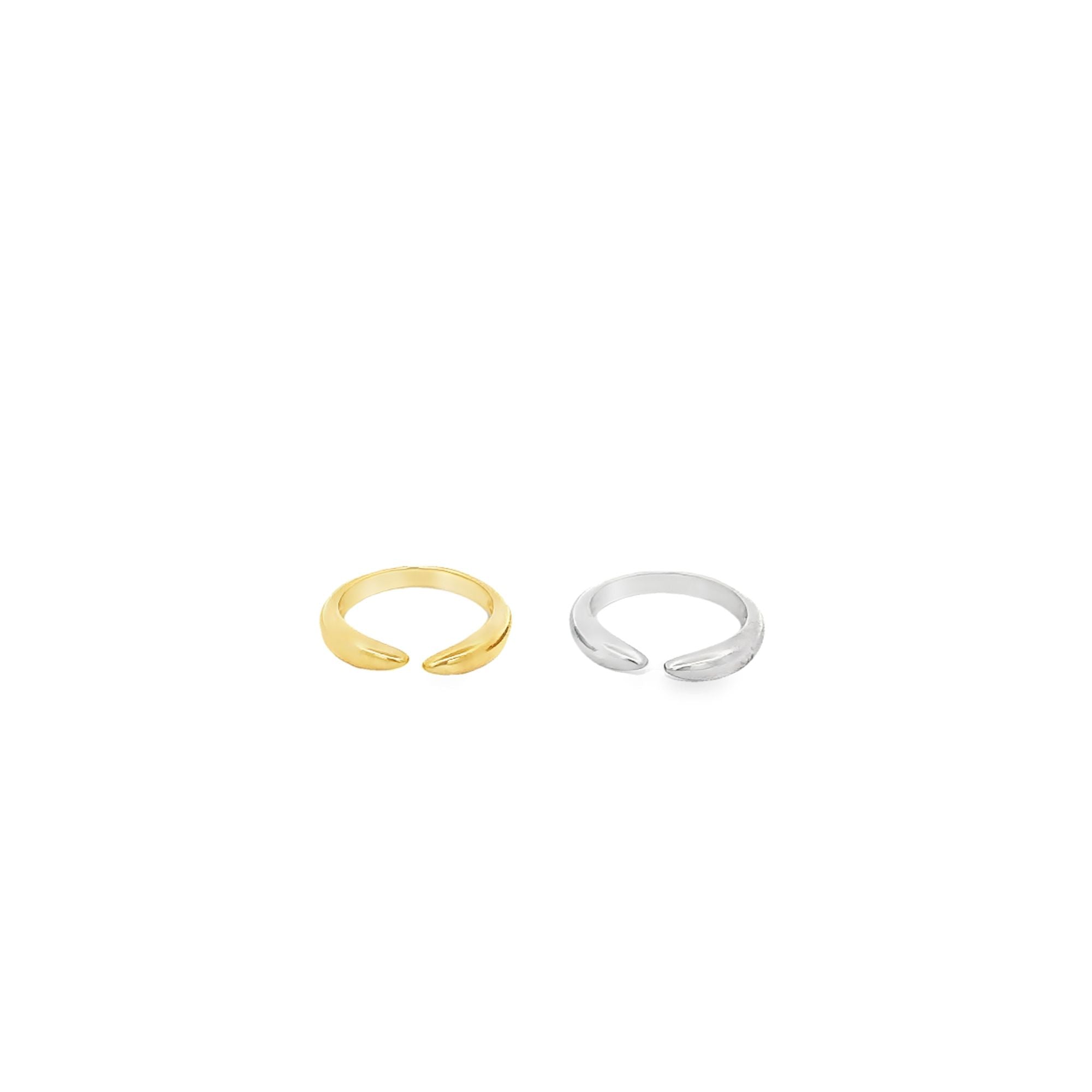 This exquisite open ring embodies contemporary elegance with its distinctive negative space design. The carefully balanced proportions create a visual tension that draws the eye, while the polished finish catches light with subtle brilliance. A sophisticated addition to your jewelry collection, it transitions effortlessly from daytime refinement to evening allure.