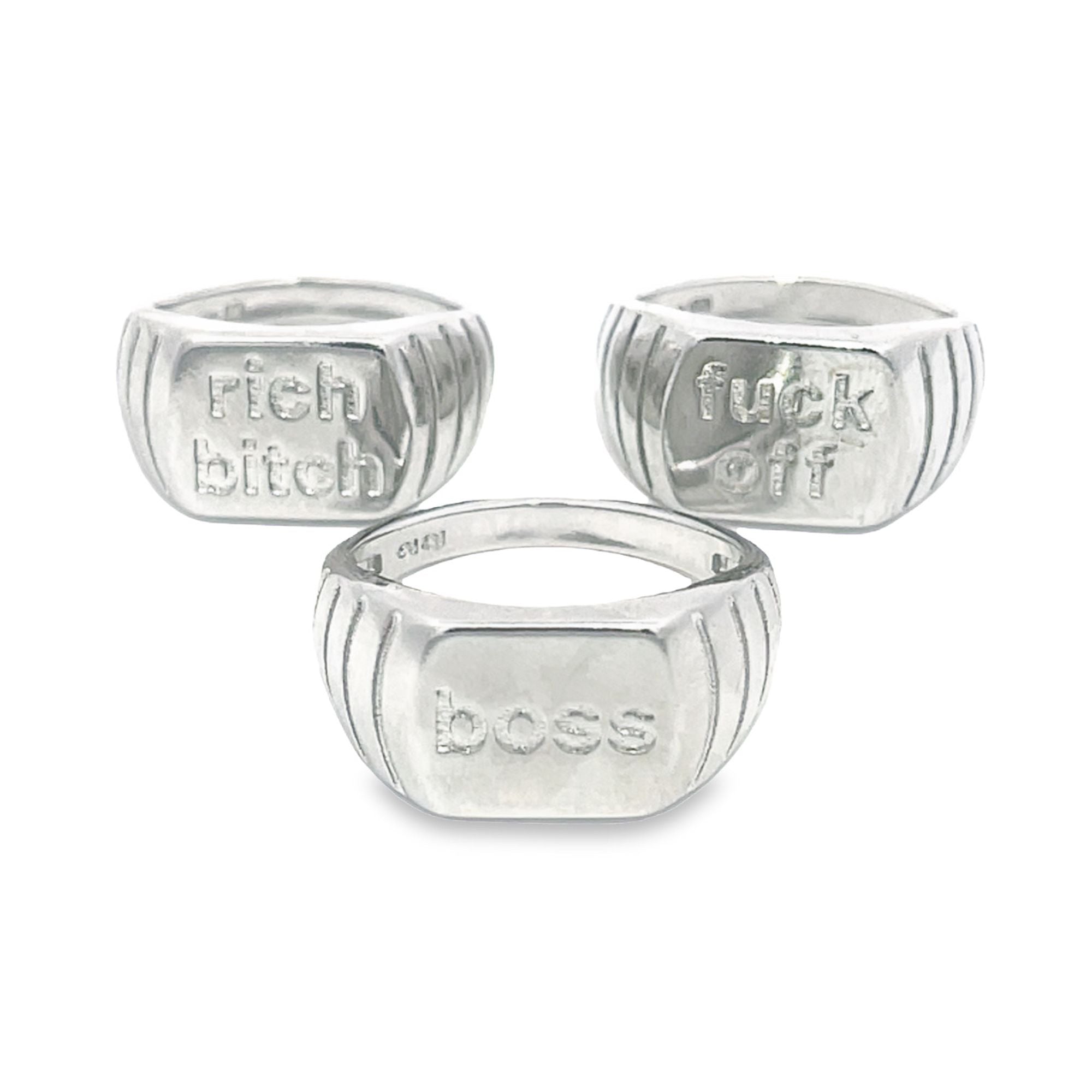 18K Rhodium Filled Boss, Rich B**ch, F*ck Off Thick Signet Ring