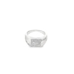 This exquisite ring boasts an eccentric design with a rectangular CZ stone, accented by a pave setting for added brilliance. The perfect accessory for those who appreciate unique and luxurious pieces. Elevate your style with this exclusive and tasteful ring.