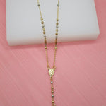 This 18K Gold, Rose Gold, and Rhodium Filled Catholic Gold Bead Rosary features a beautiful Crucifix and Virgin Mary charm. Made with high-quality materials, this rosary is a classic and stylish way to show your faith. Its durable design ensures it will be a cherished piece for years to come.