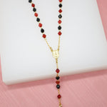 Catholic Red And Black Bead Rosary With Crucifix Cross (G79B)