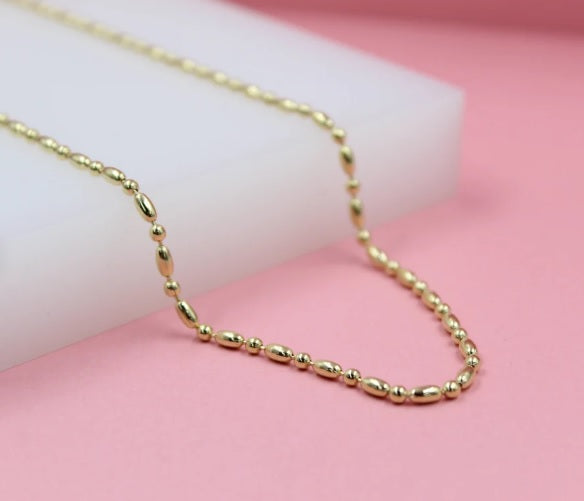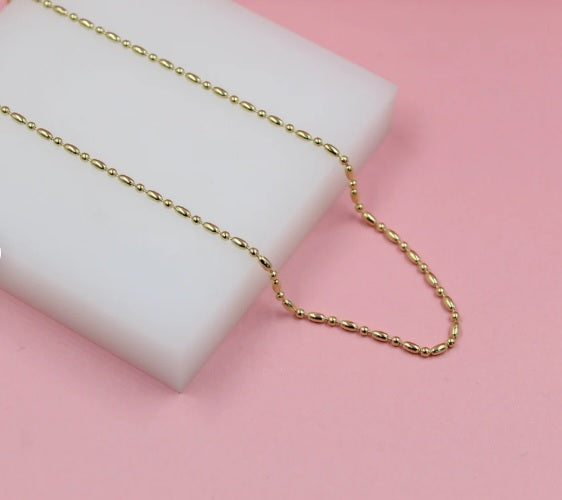 Add a touch of elegance with our 18K Gold Filled 2mm Ball And Bar Chain (I443). This timeless piece adds a subtle shine to any outfit. Perfect for daily wear or special occasions, it's a must-have for any jewelry collection.