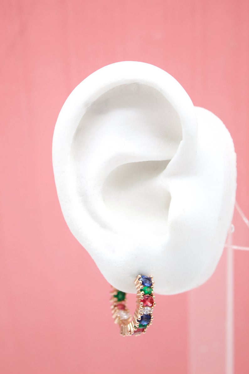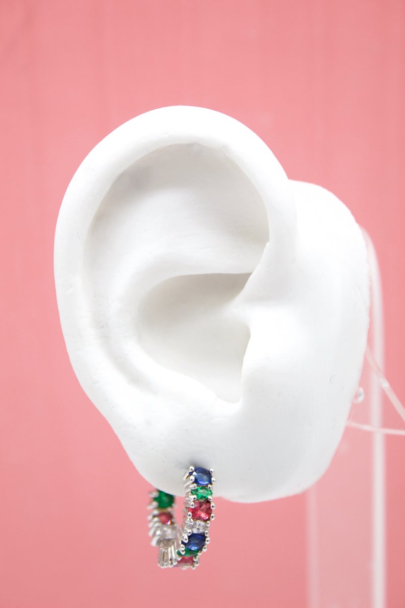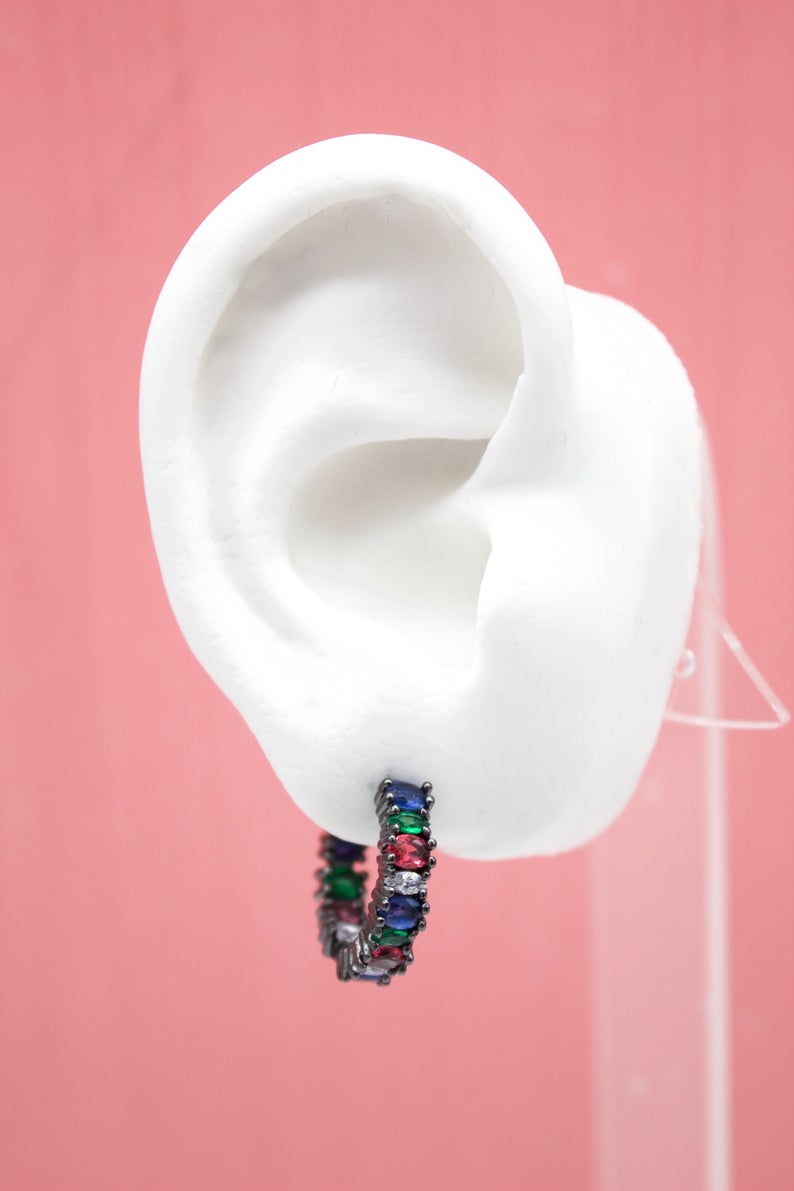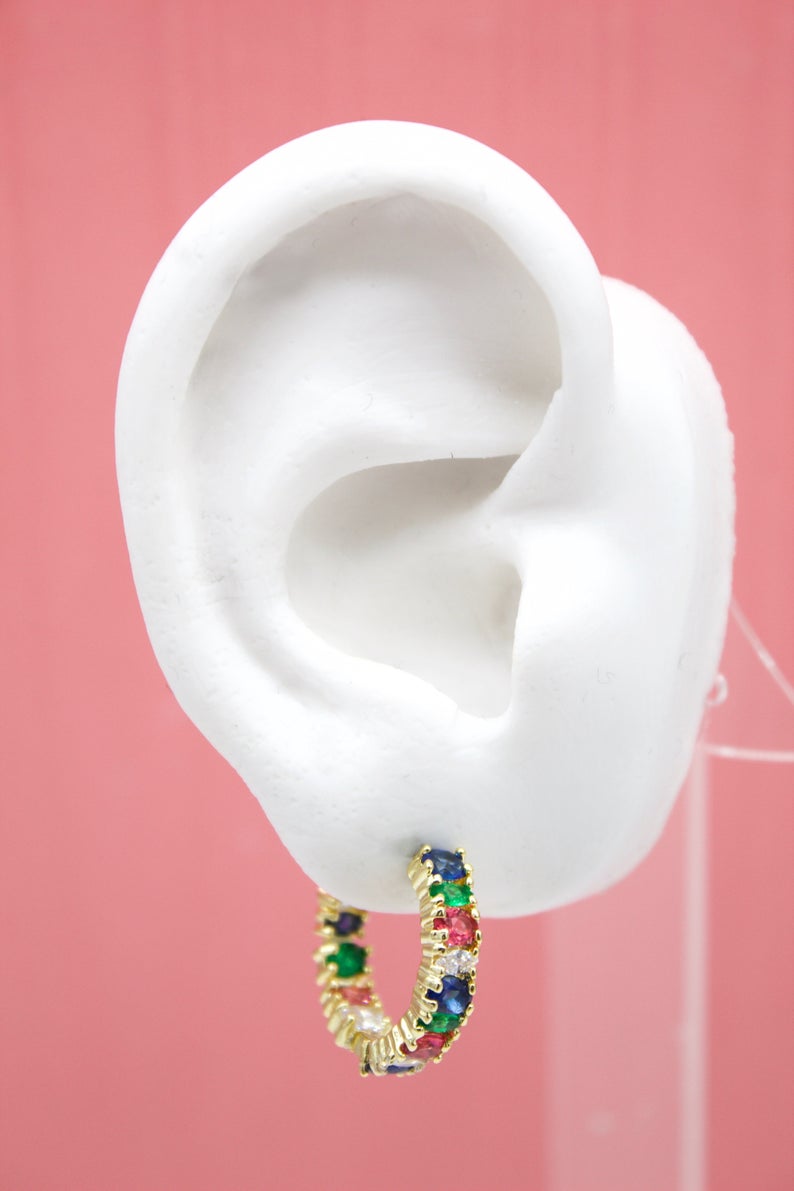 18K Gold And Rhodium Filled Hoop Earrings With MulitColor CZ Cubic Zirconia Stones (L224)