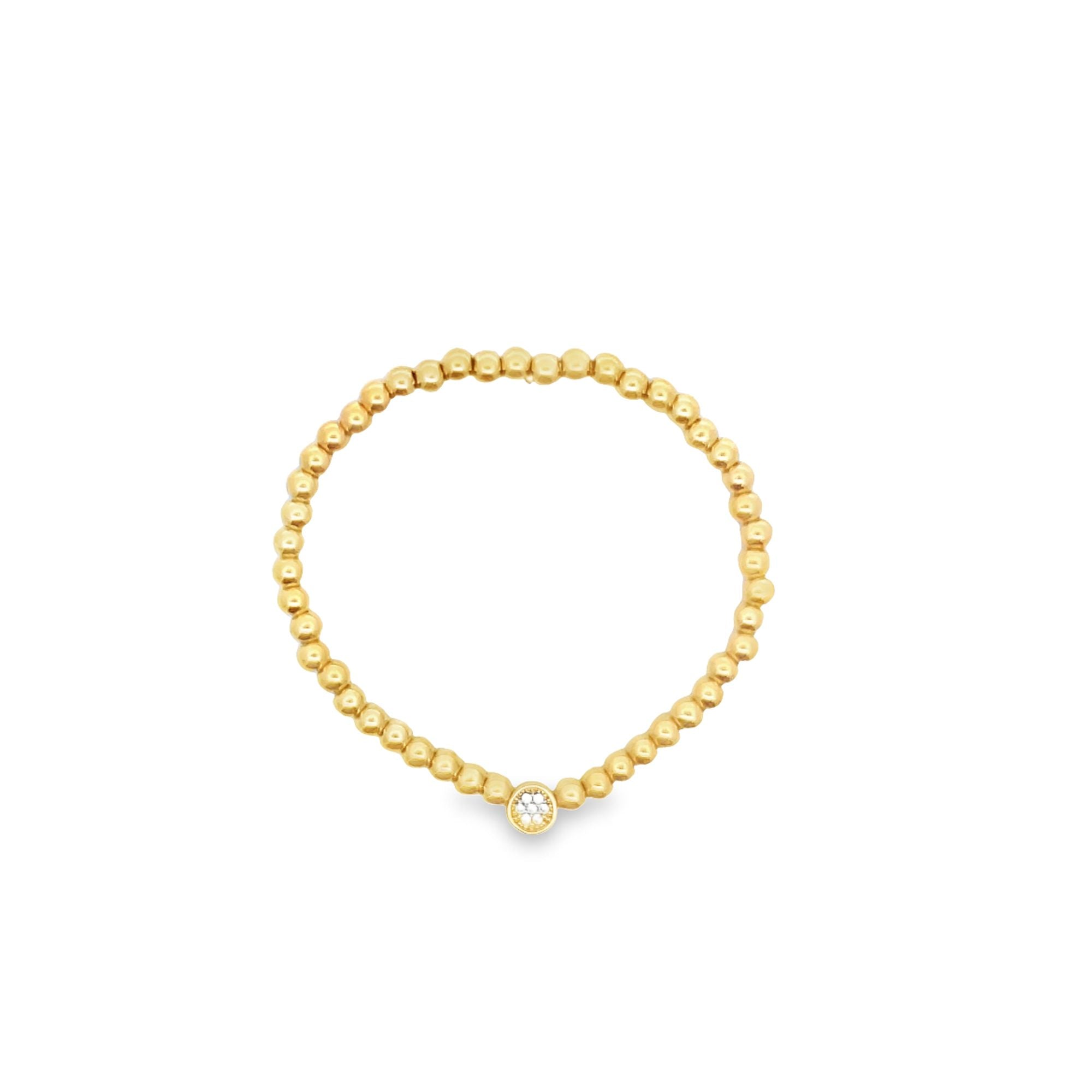 4mm Gold Elastic Bead Bracelet With A ROUND CZ Charm (I49)