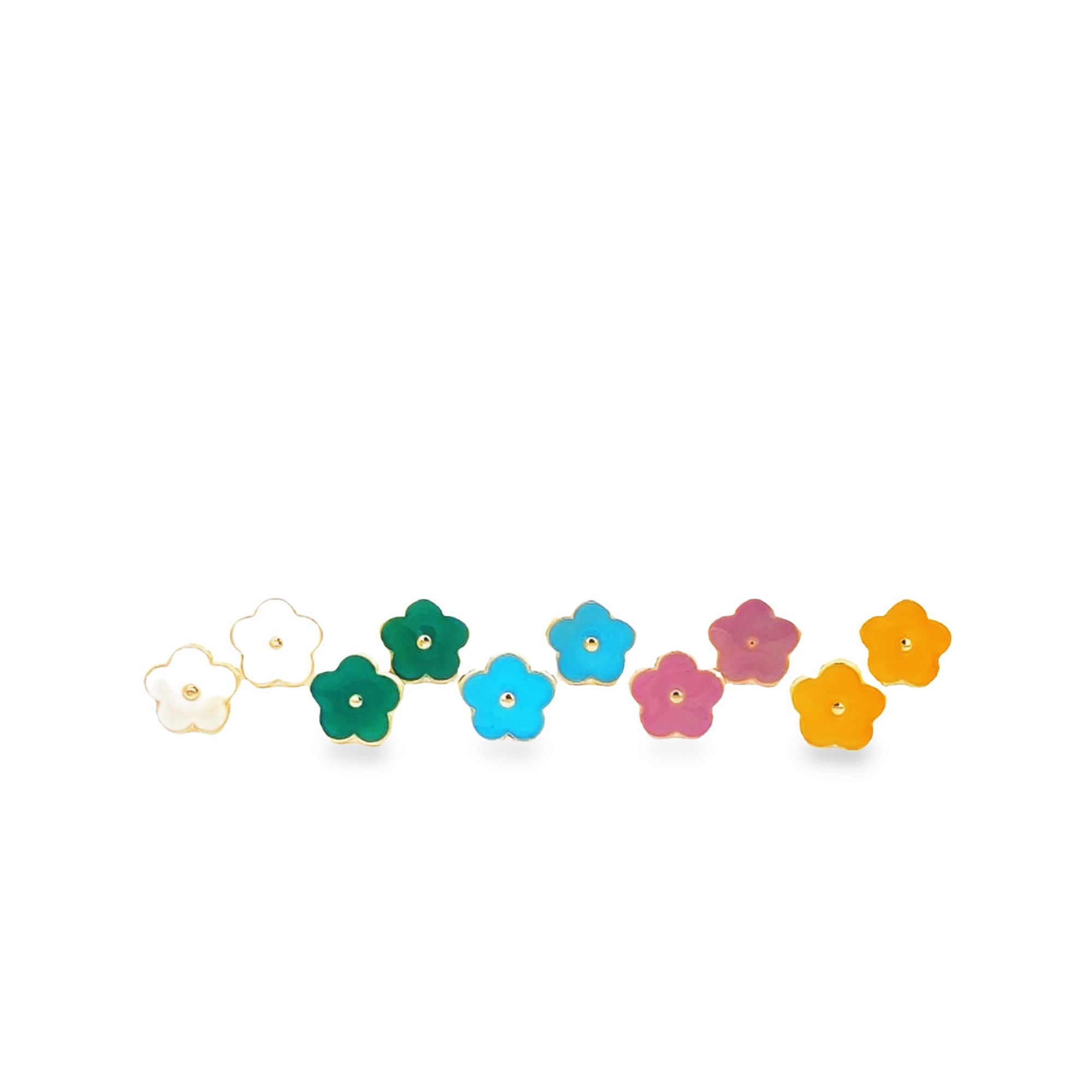 18K Gold Filled 5 Petals Calystegia Flower Colorful Stud Earrings (L422)