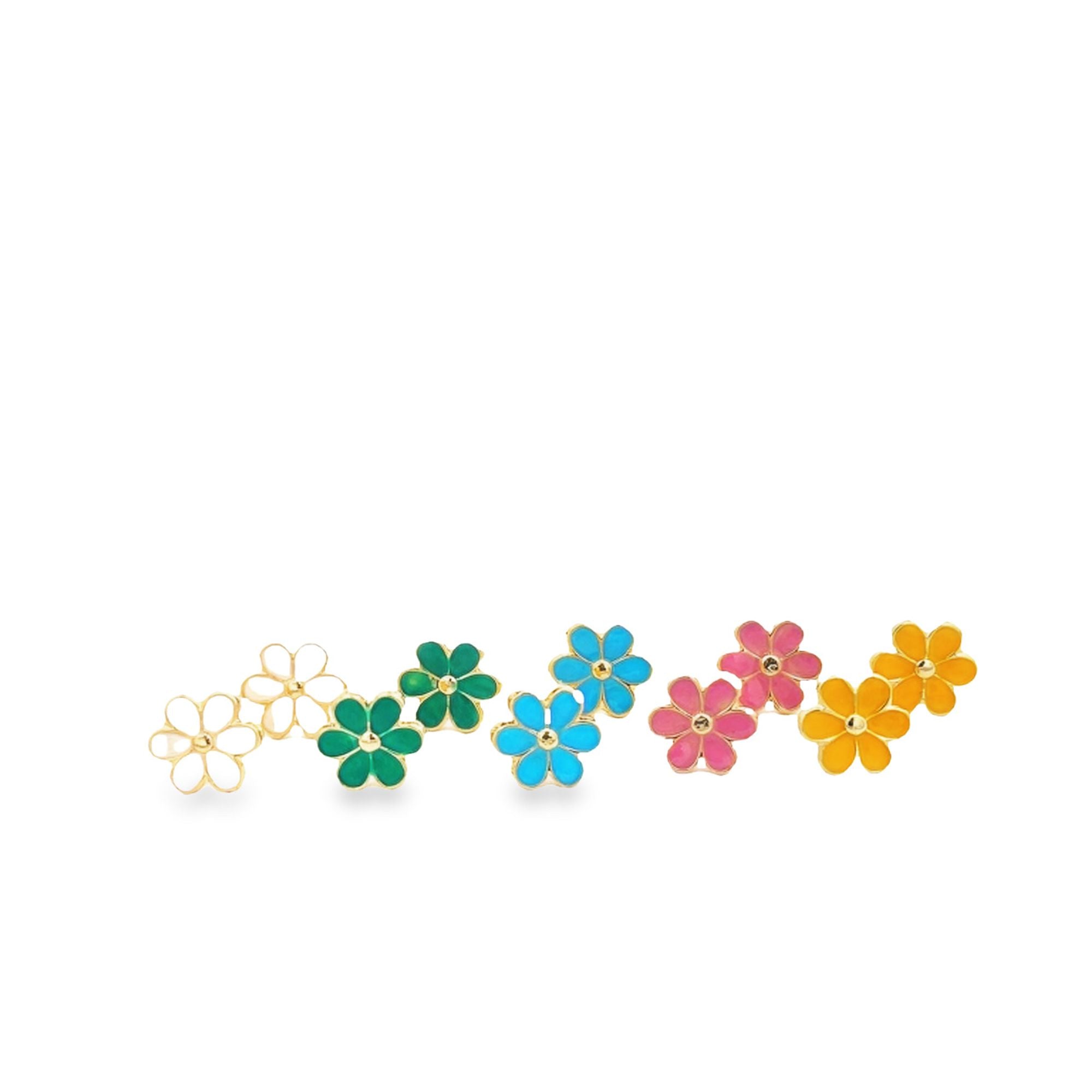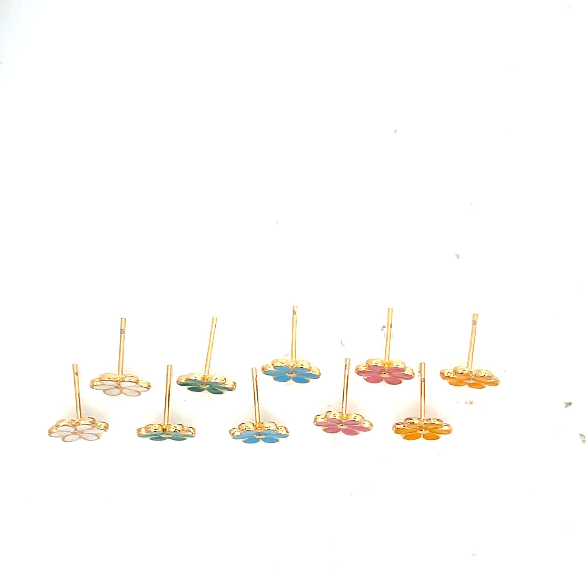 18K Gold Filled 6 Petals Sisyrinchium Flower Colorful Stud Earrings (L433)