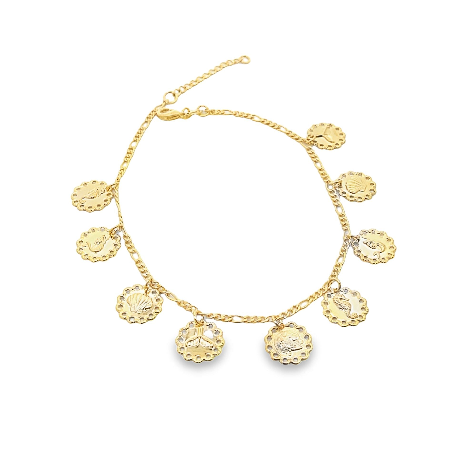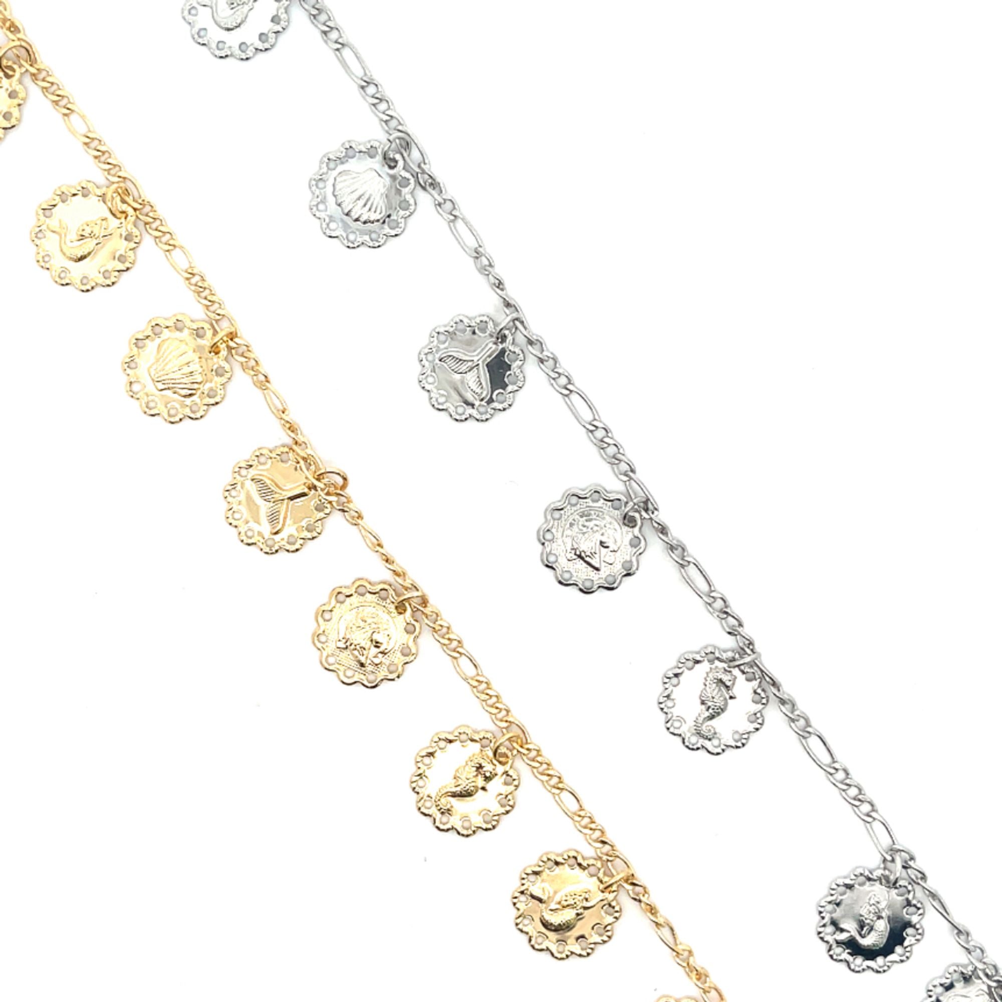 18K Gold Filled Beach Sea Shell, Mermaid, Sea Horse, Whale Tail Charm Anklet (E203)