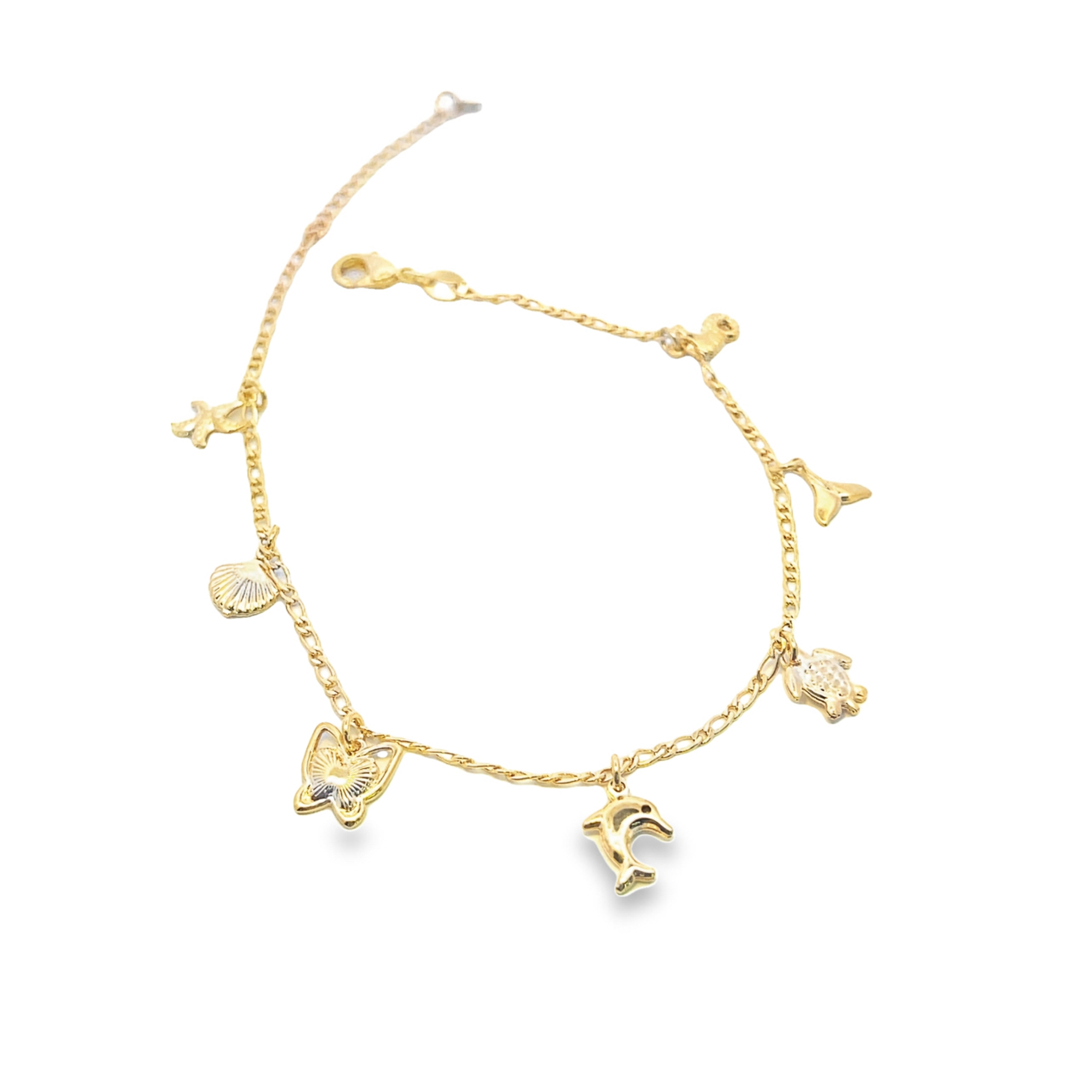 18K Gold Filled Beach Sea Shell, Star Fish, Sea Horse, Butterfly Charm Anklet (E24)