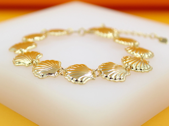 18K Gold Filled Beach Sea Shells Charm Bracelet (I462)