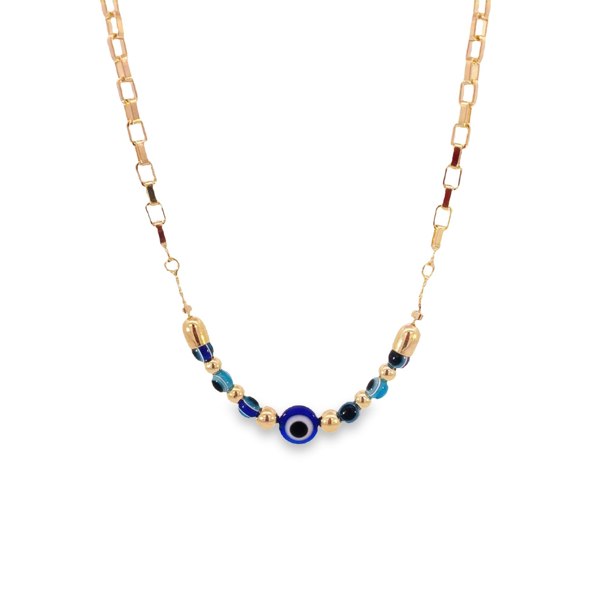 18K Gold Filled Beaded Evil Eye Charm Necklace (H175)