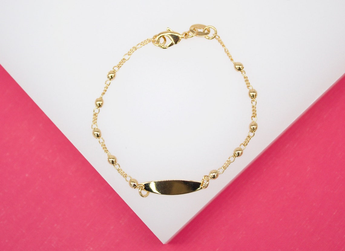 Gold Filled Beaded Figaro Bracelet With Oval Plate (XX15)