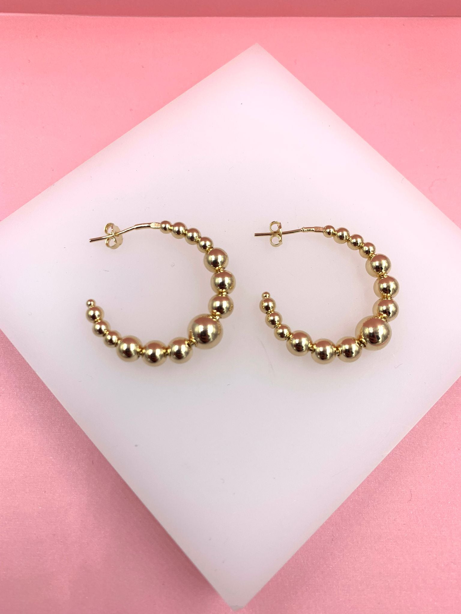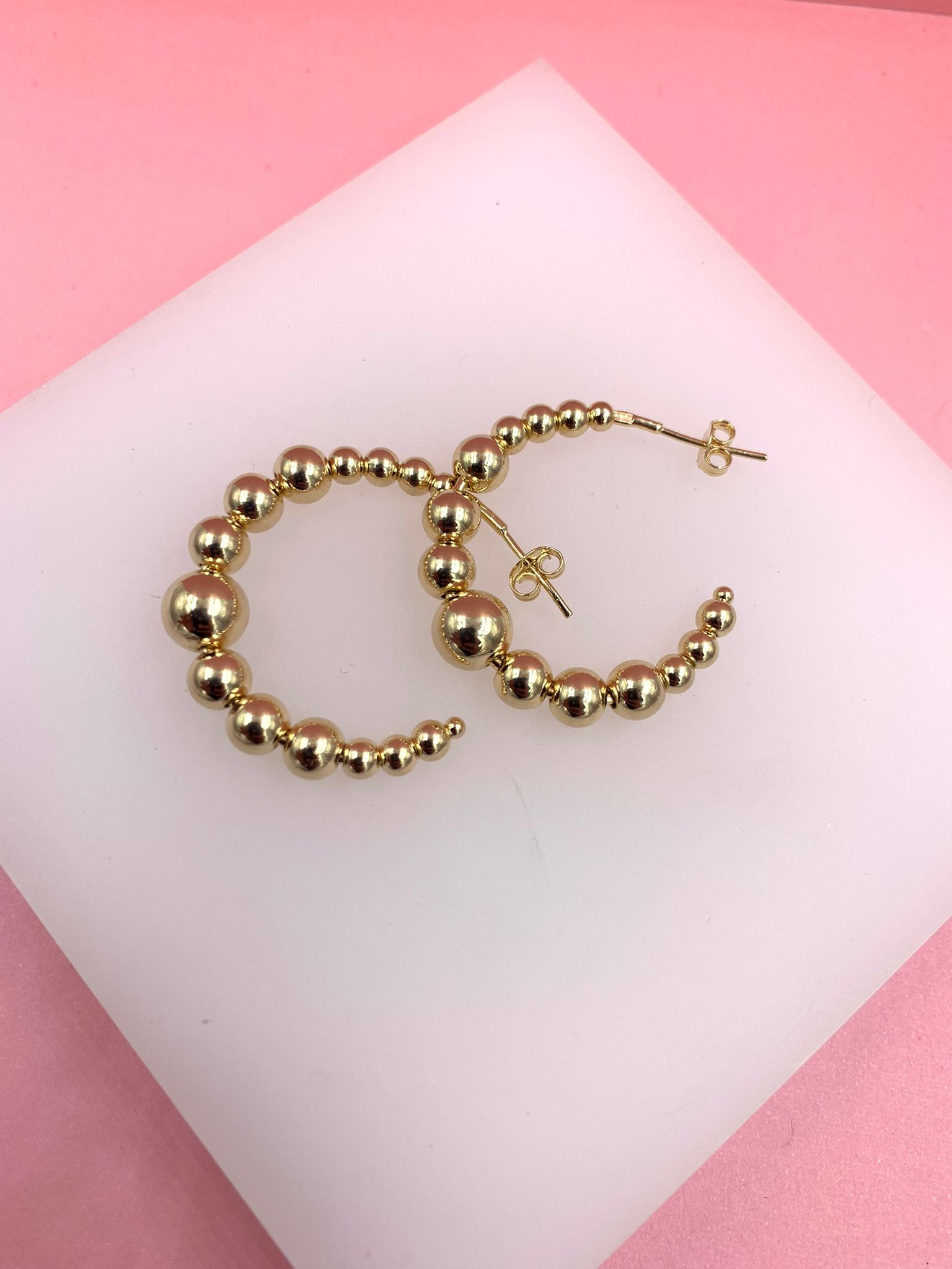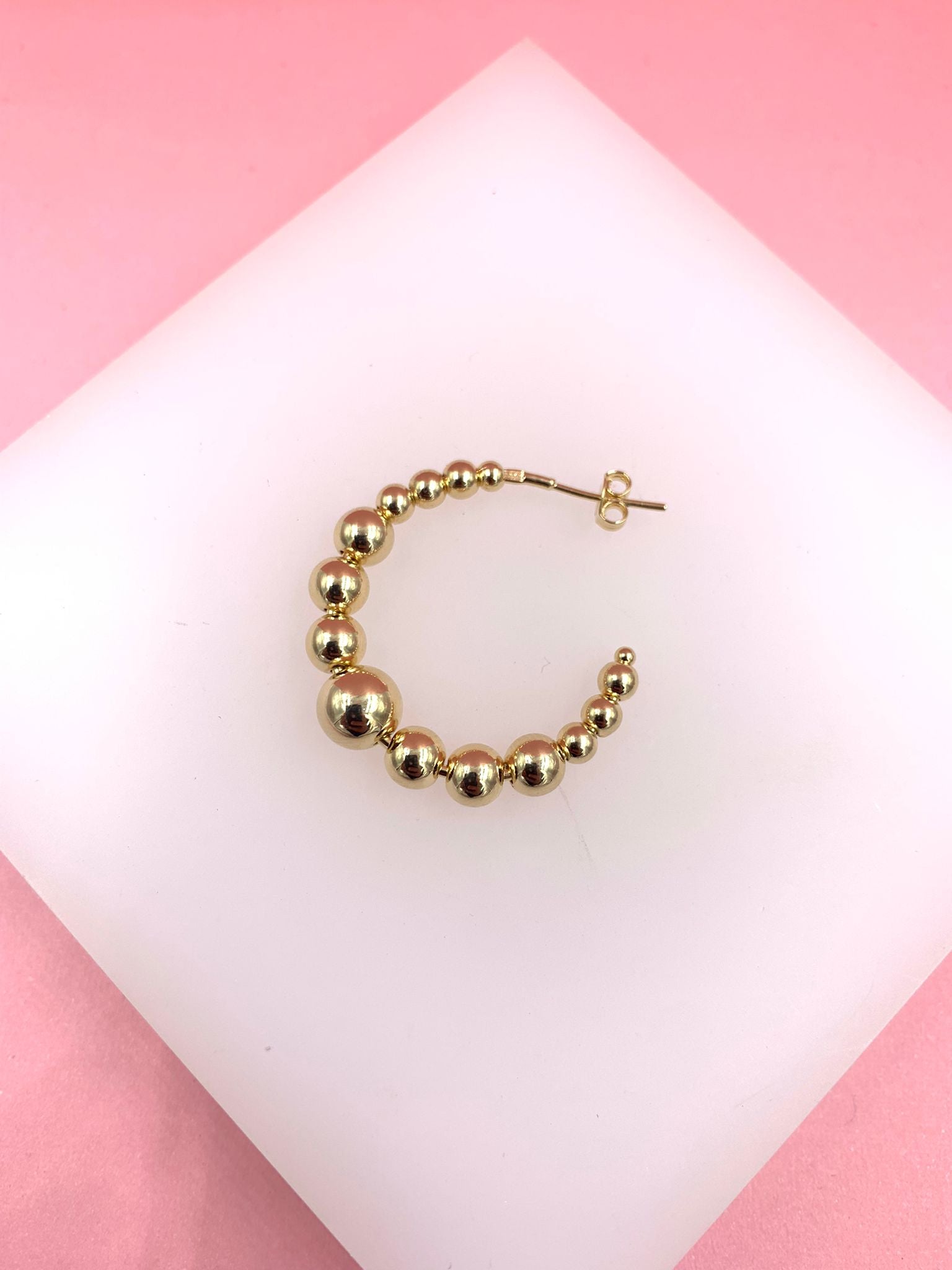 18K Gold Filled Beaded Open Hoop Earrings (K75)