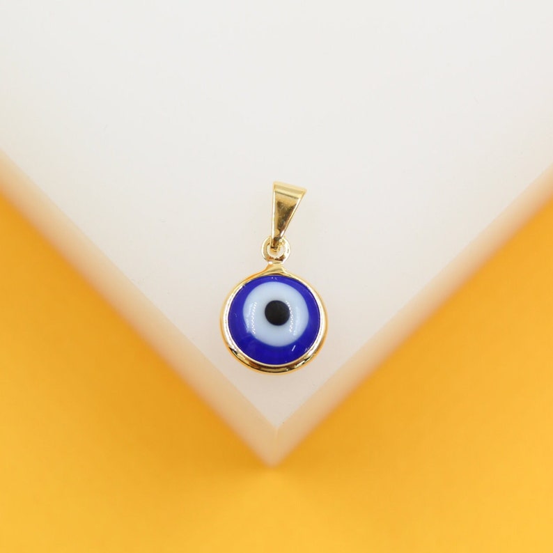 18K Gold Filled Dark Blue Evil Eye Enamel Charm Pendant (A259)
