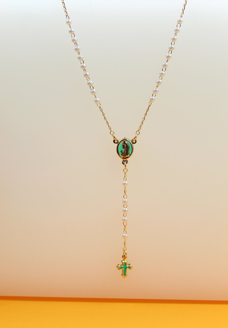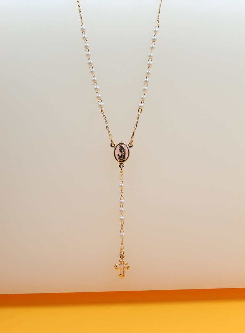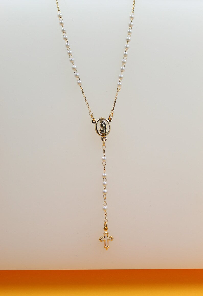 Discover divine elegance with our Catholic Gold Bead Rosary, featuring a gold crucifix and milagros charm.