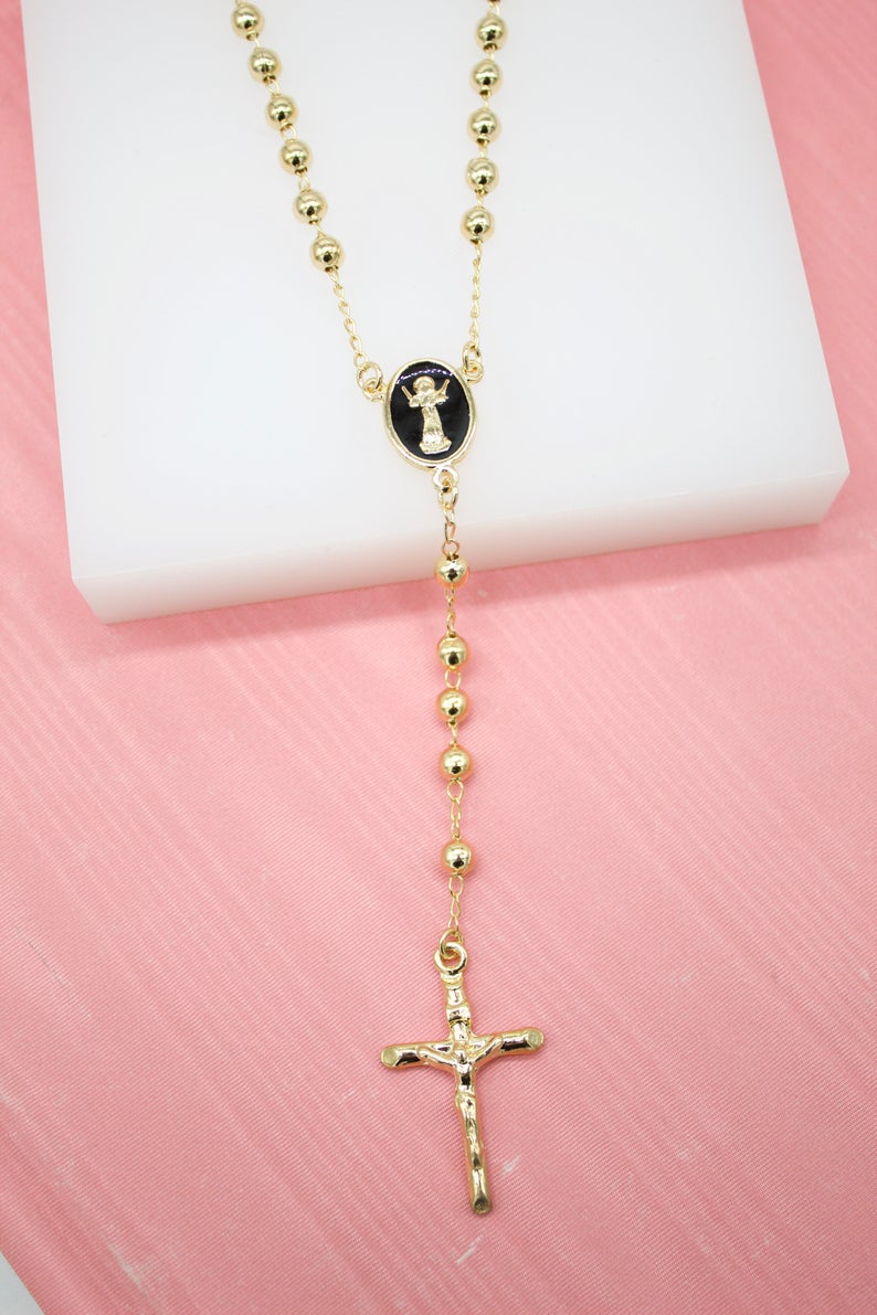 Conquer your fears and embrace the unknown with our 18K Gold Filled Catholic Rosary. Made with genuine gold beads and adorned with a Crucifix Cross and Divino Niño charm, this rosary is a symbol of strength and faith. Take a leap of faith and add this bold and daring piece to your collection!