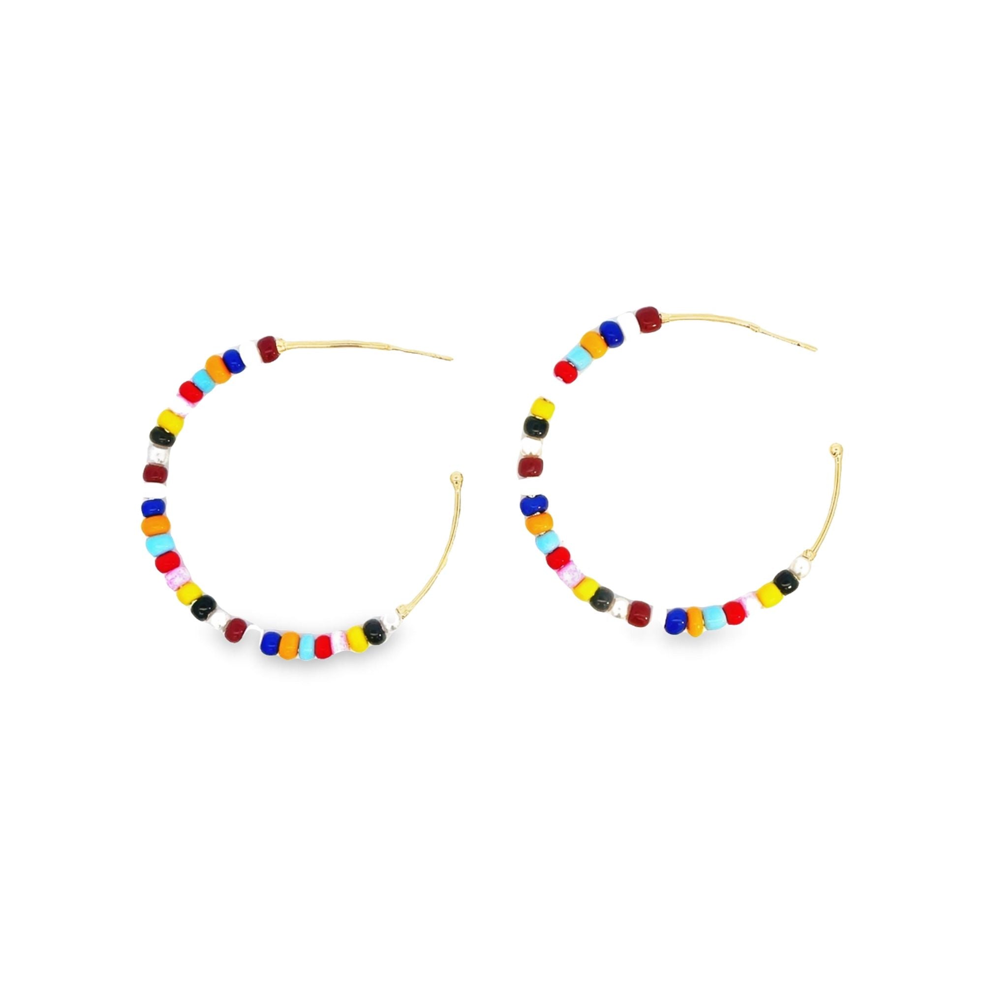 18K Gold Filled Colorful Beaded Open Hoop Earrings (L458)