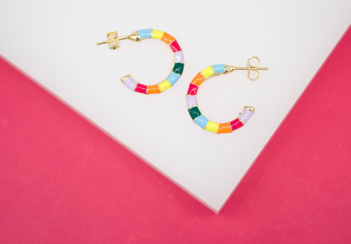 18K Gold Filled Colorful Enamel Open Hoop Stud Earrings (L55)