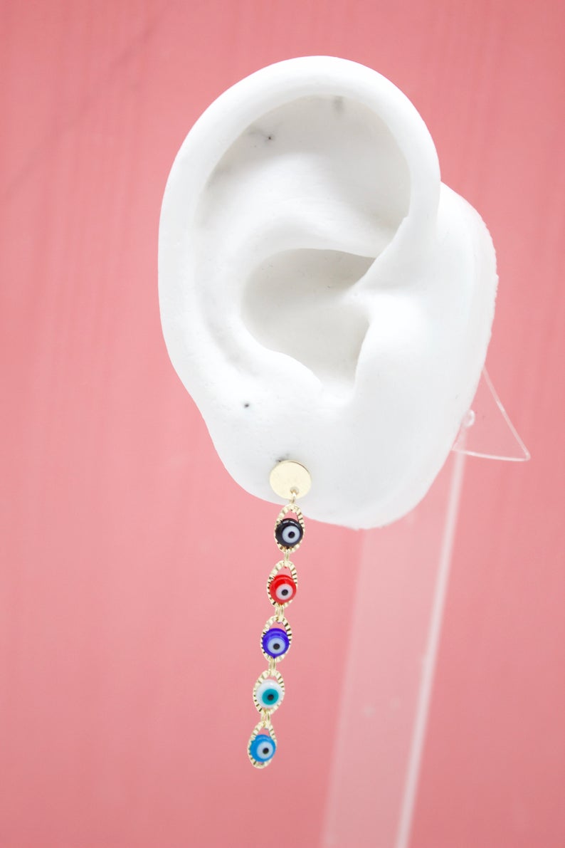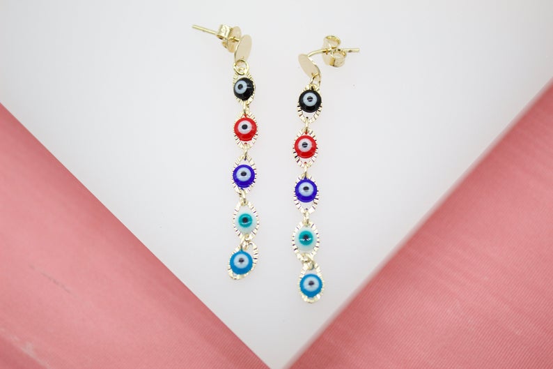 18K Gold Filled Colorful Evil Eyes Long Drop & Dangle Earrings