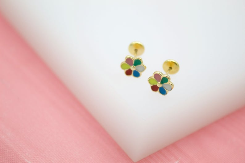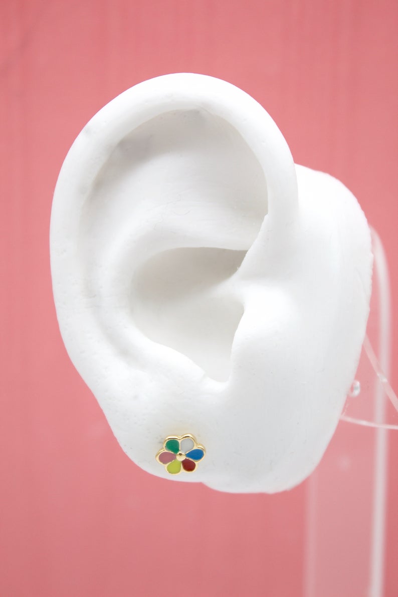 18K Gold Filled Colorful Flower Stud Earrings With CZ Cubic Zirconia Stone