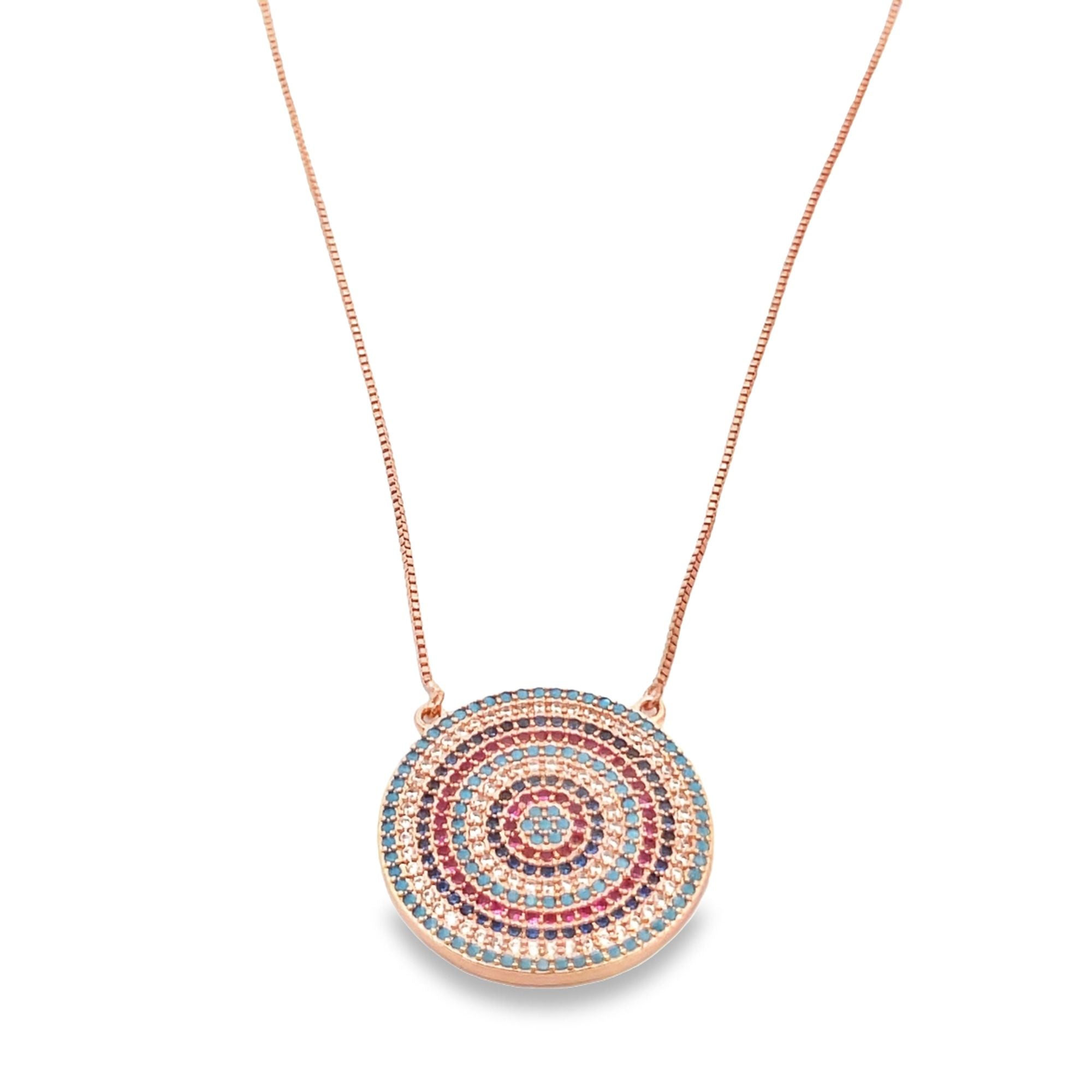 Colorful Pave Disc Circle Pendant Necklace & Stud Earrings Set (G214)