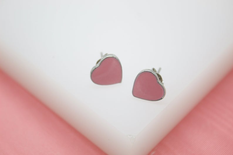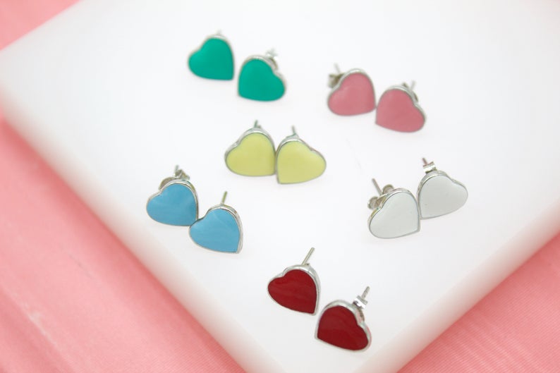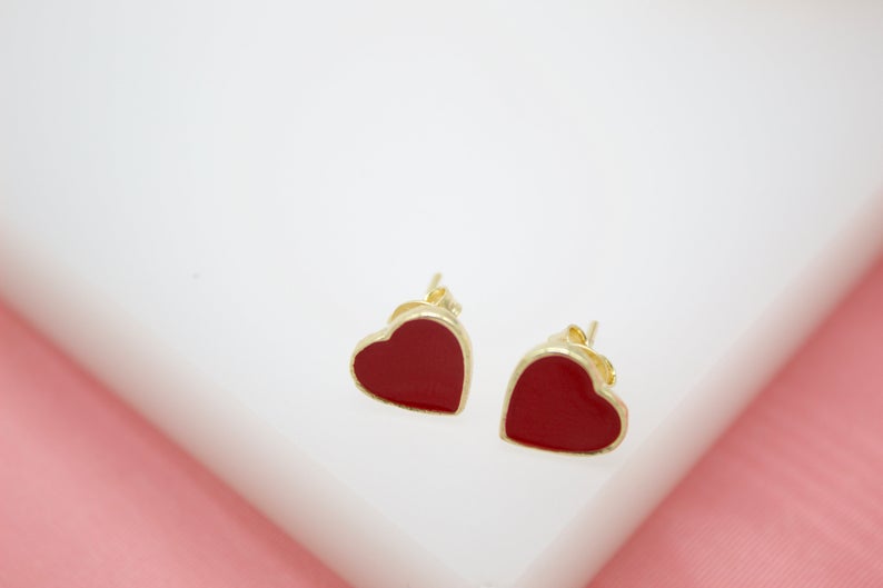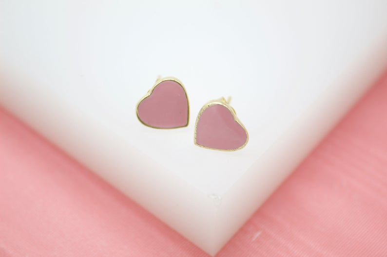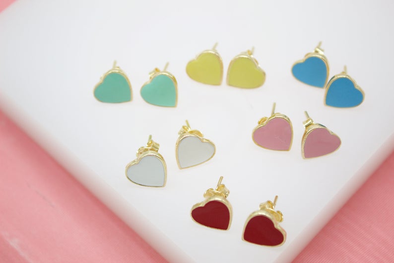 18K Gold Filled Colors Heart Stud Earrings (L44)