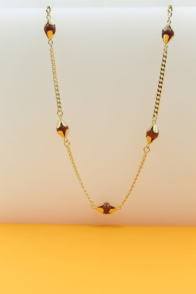 18k Gold Filled Curb Chain Necklace With Large Brown Beads (F2)