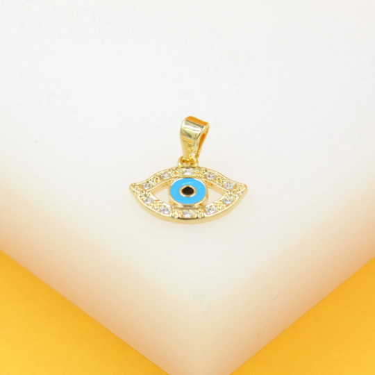18K Gold Filled CZ Blue Evil Eye Enamel Charm Pendant