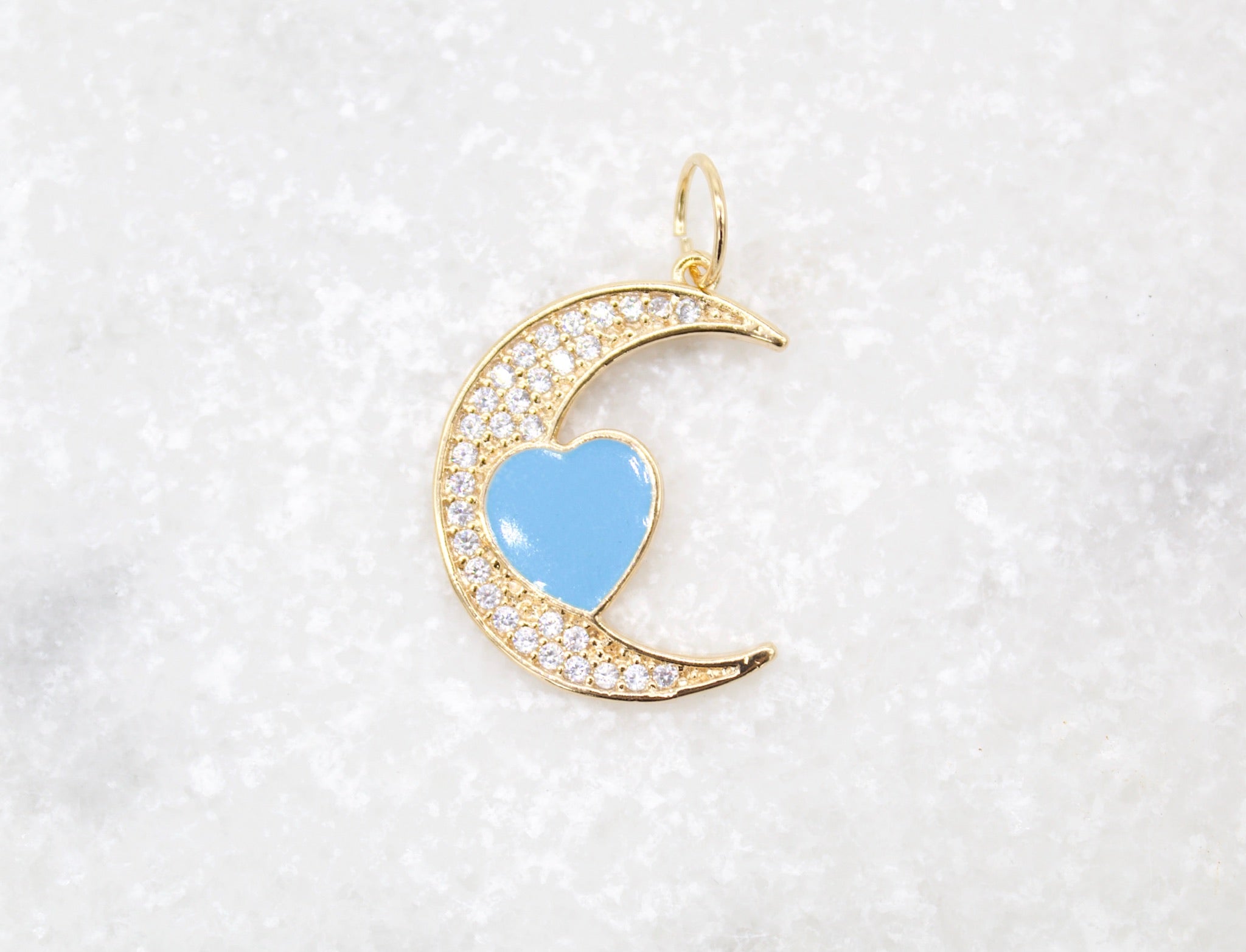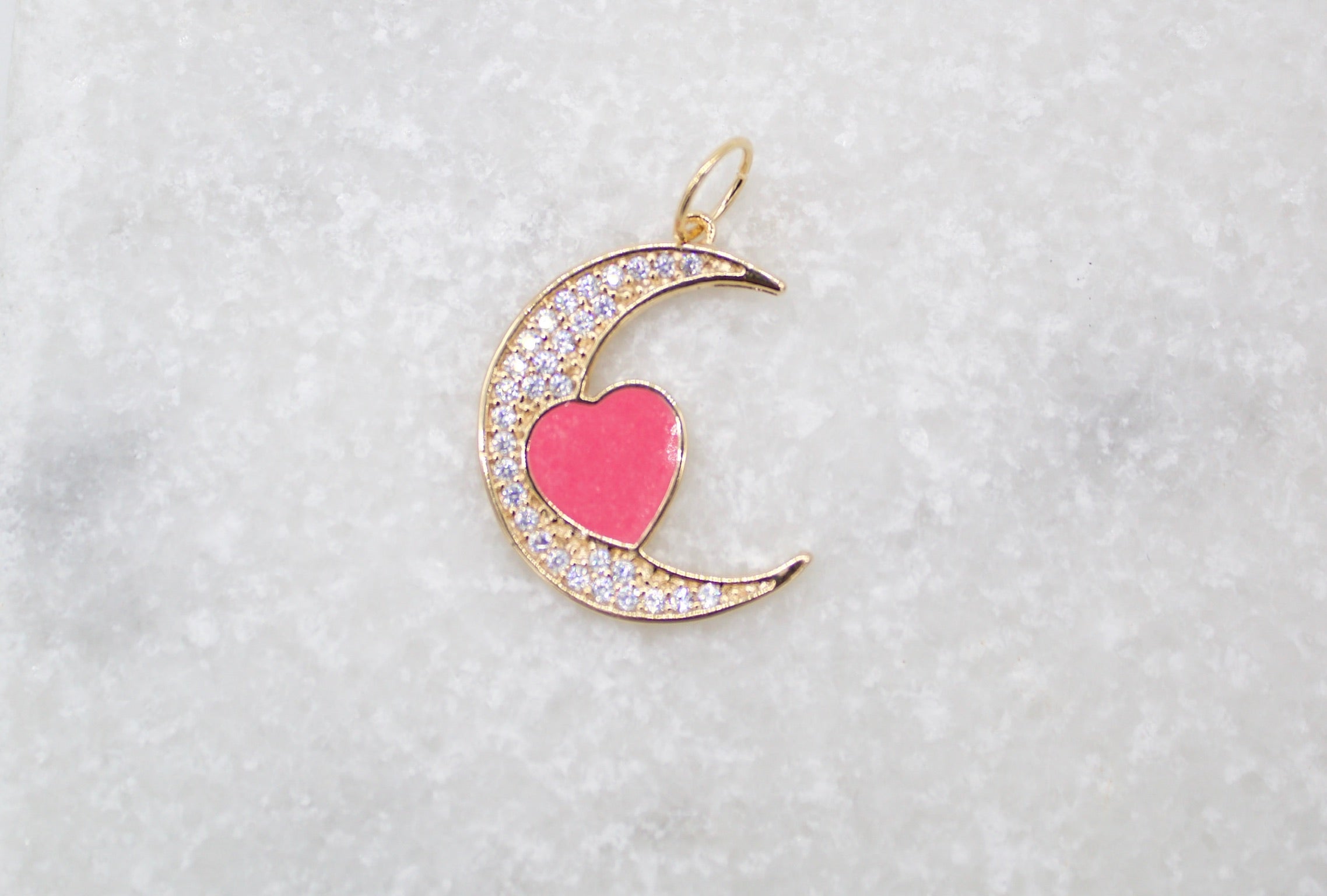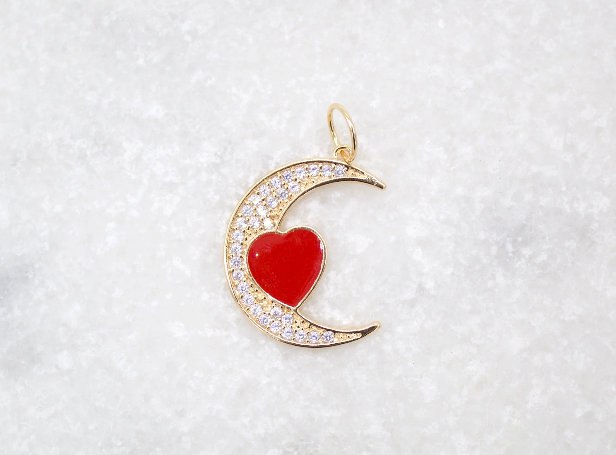 18K Gold Filled CZ Crescent Moon With Enamel Heart Pendant