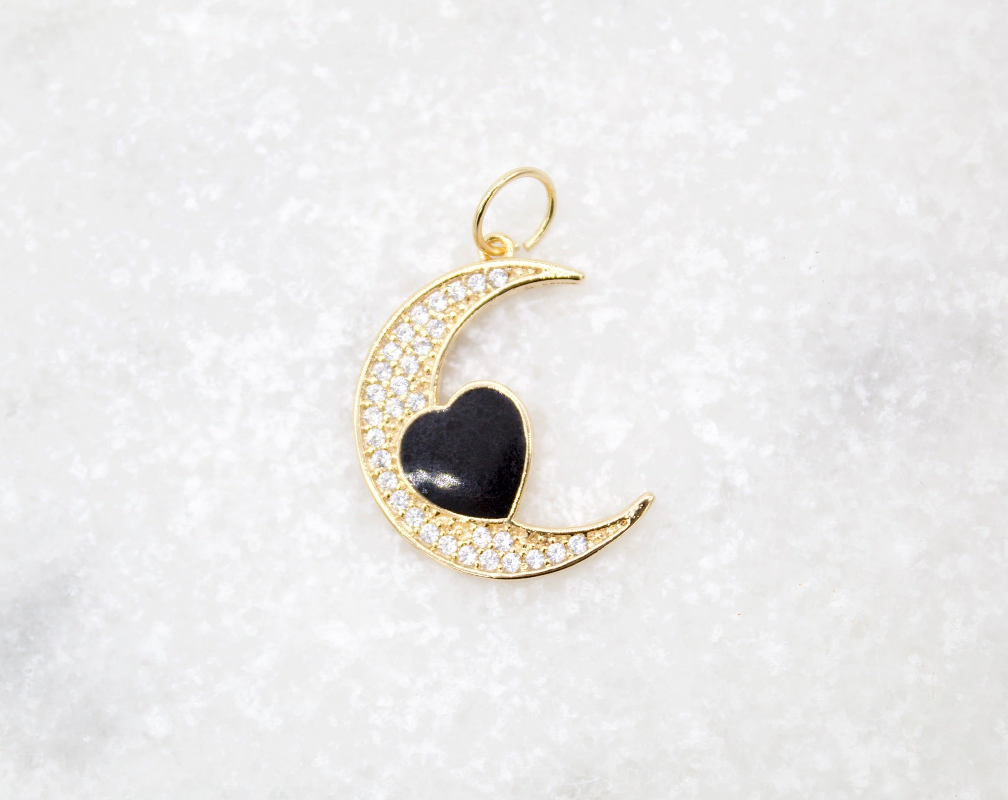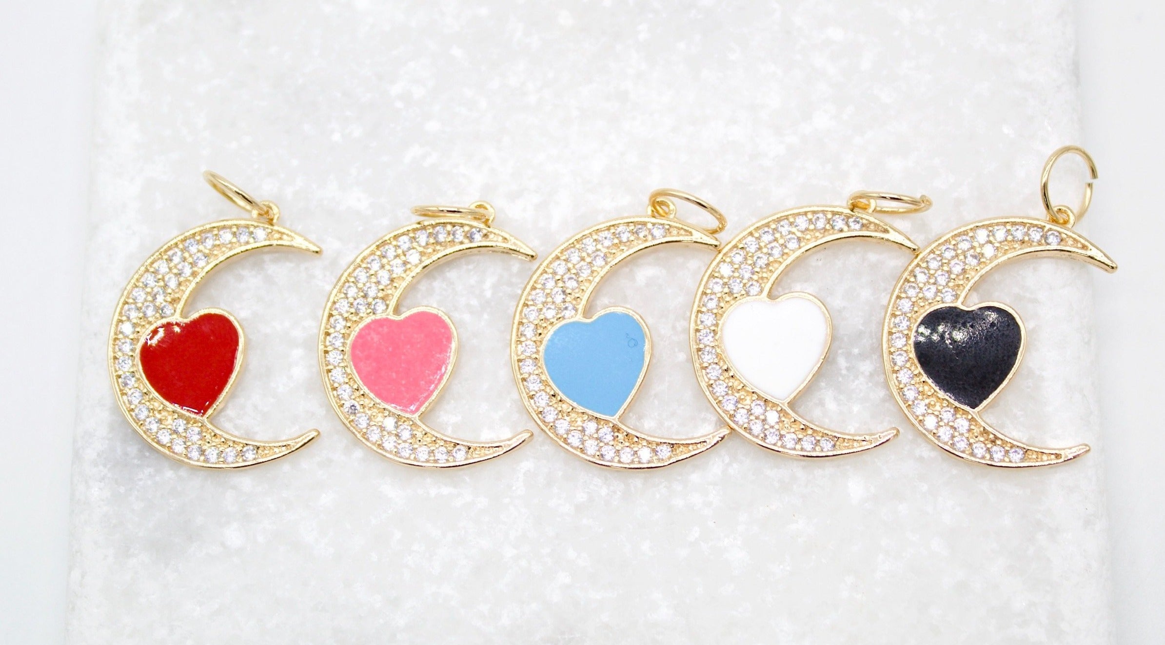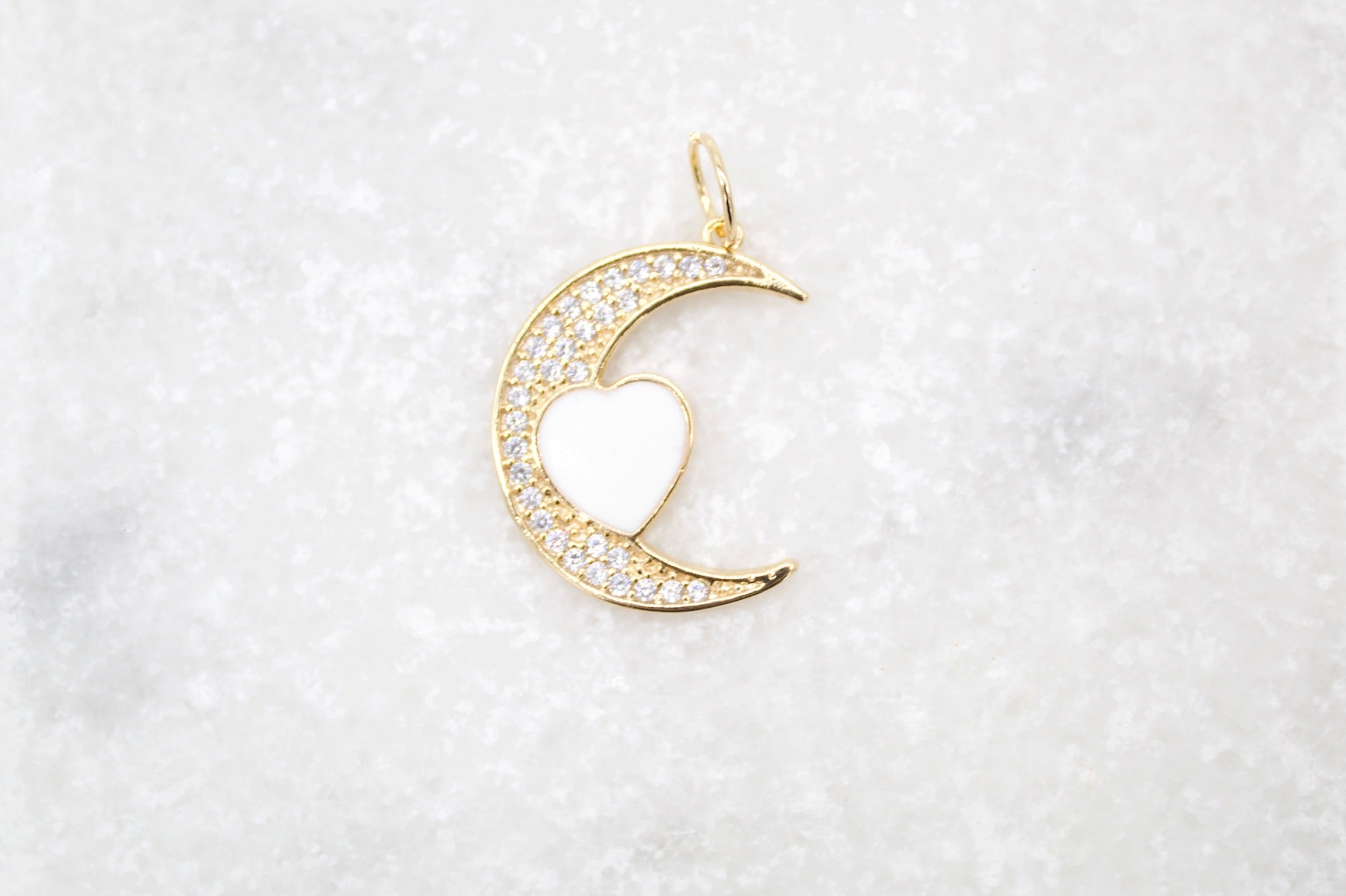 18K Gold Filled CZ Crescent Moon With Enamel Heart Pendant