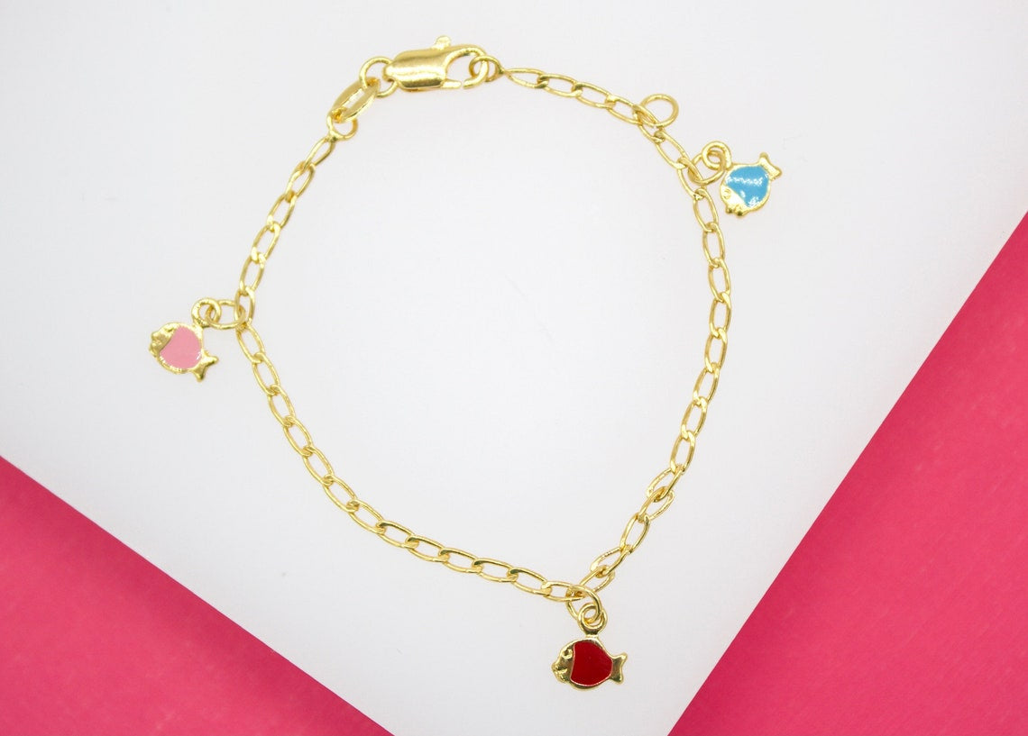 18K Gold Filled Dangle Enamel Fish Charm Bracelet