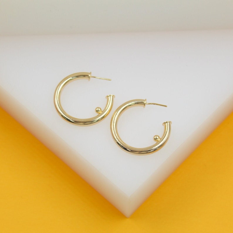 18K Gold Filled Designed bead Thin Open Hoop Earrings (J119)