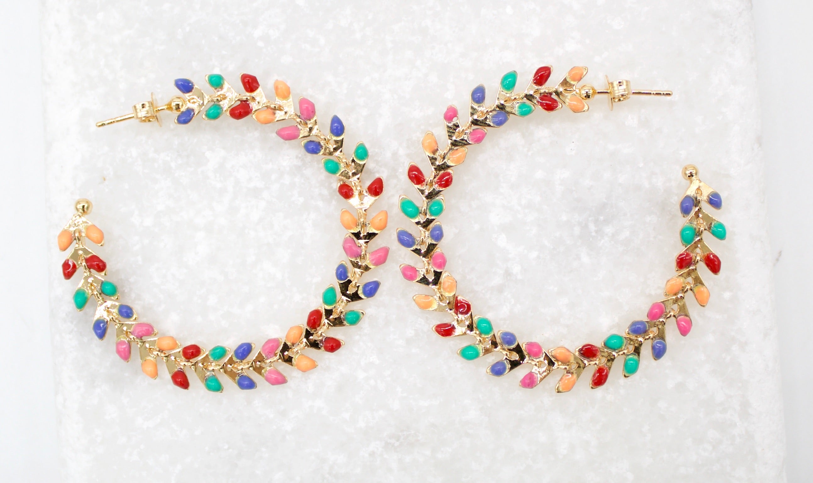 18K Gold Filled Enamel Arrow Open Hoop Earrings (K243)