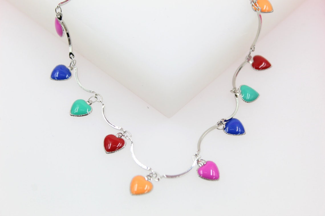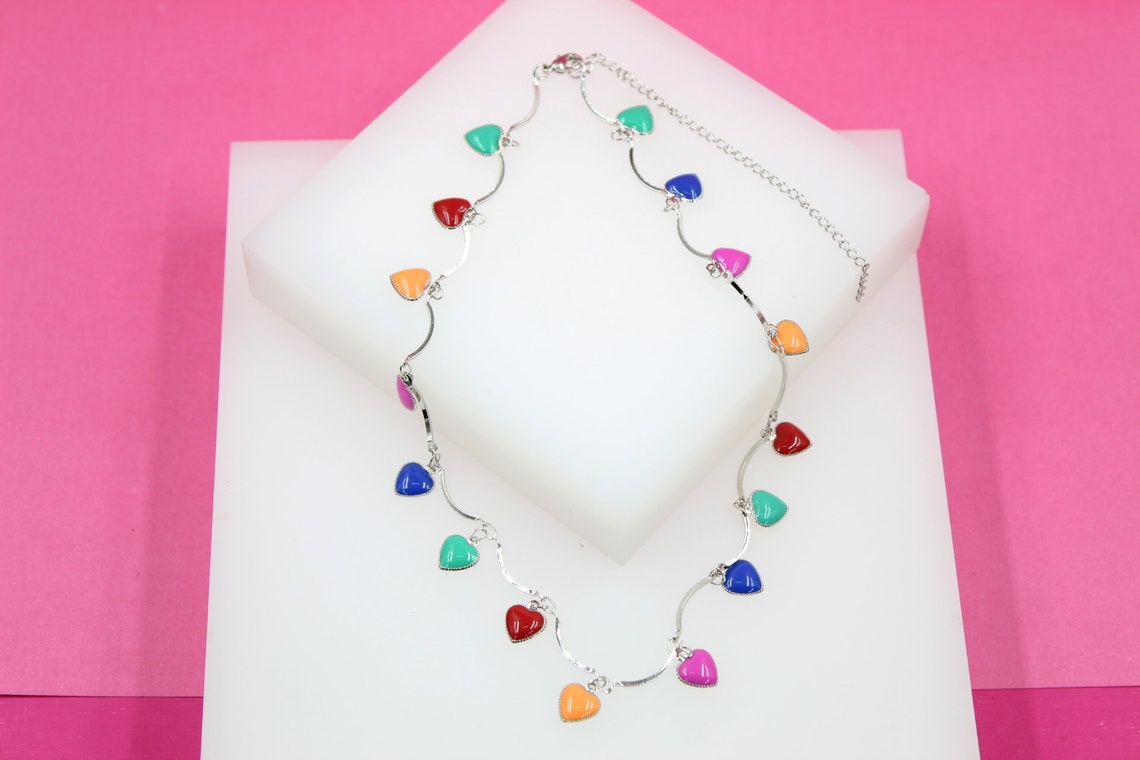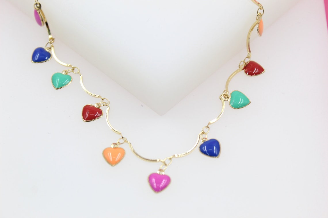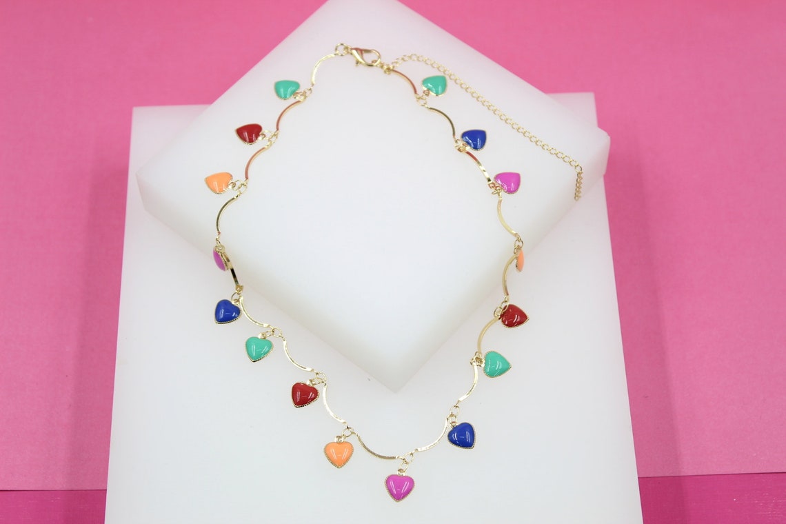 18K Gold Filled Enamel Dangle Heart Link Choker Necklace (G54)