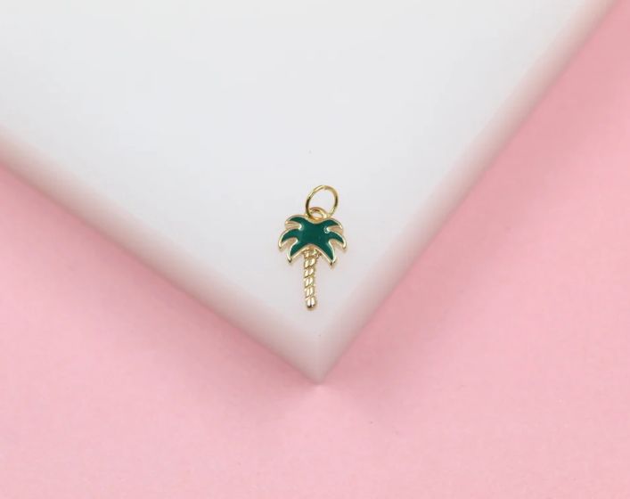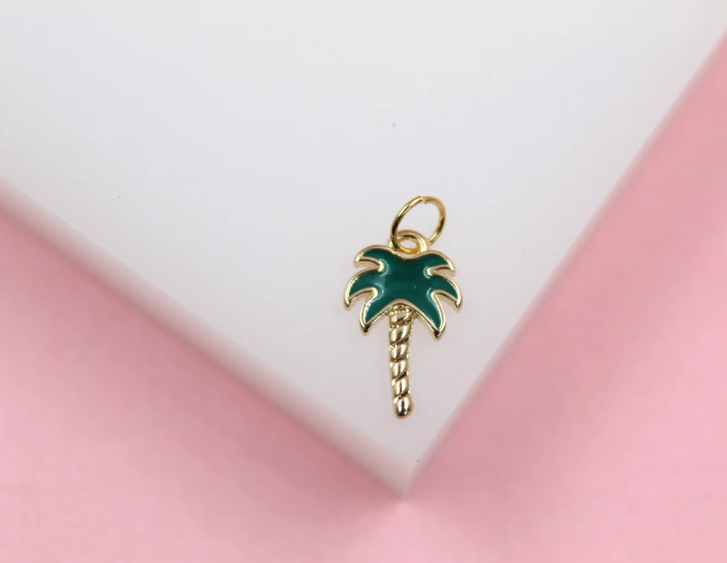 18K Gold Filled Enamel Green Palm Tree Pendant Charm