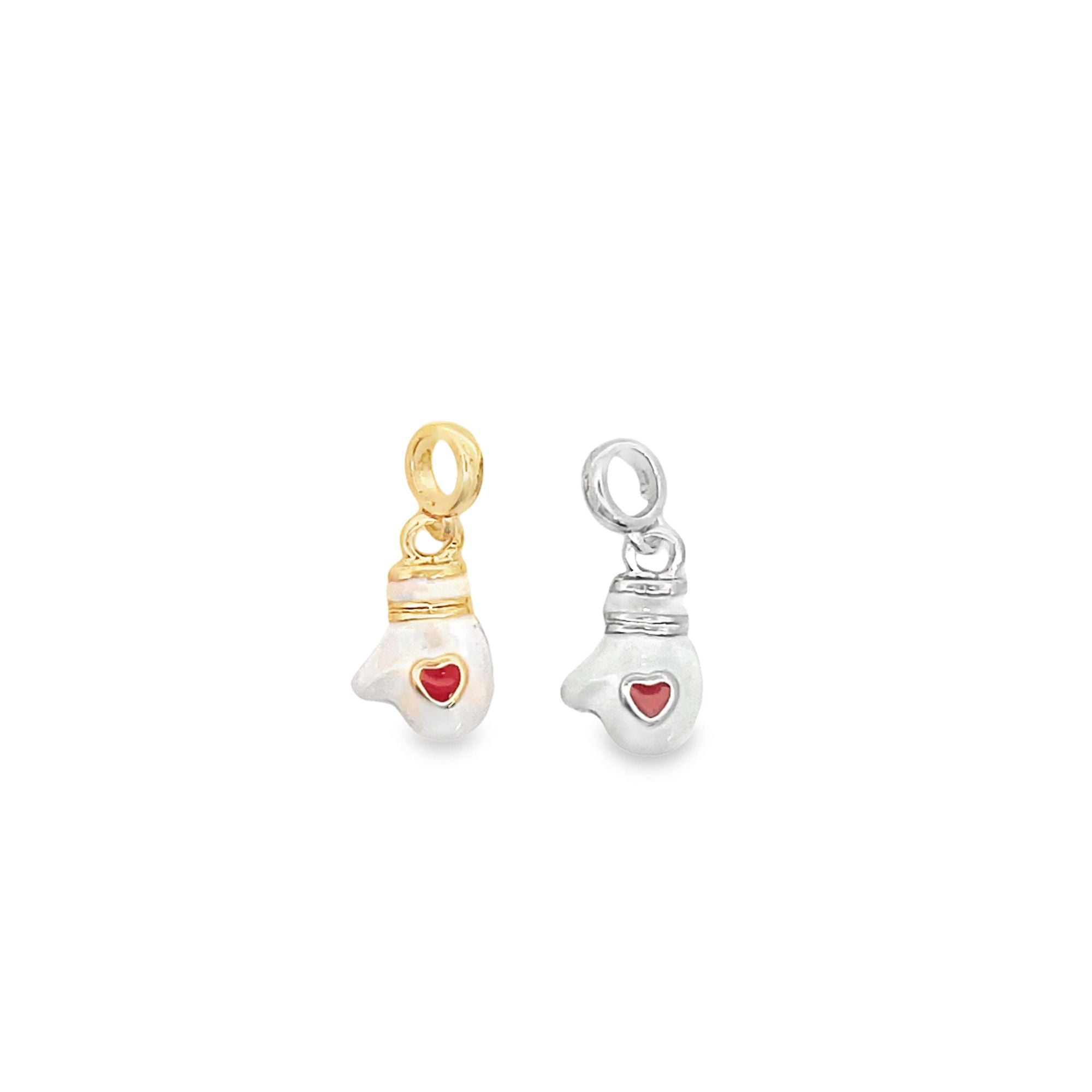 Enamel Mitten Glove with Heart Hand Pendant Charm