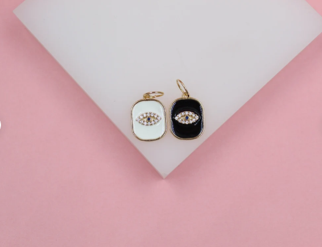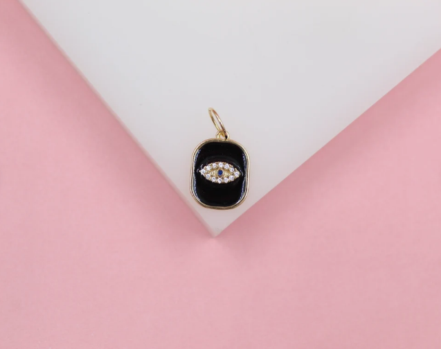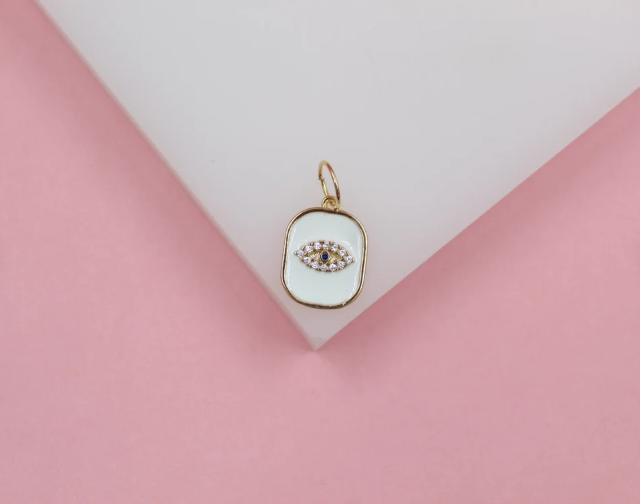 18K Gold Filled Enamel Pendant Charm With Evil Eye Shaped Micro CZ Cubic Zirconia Stones