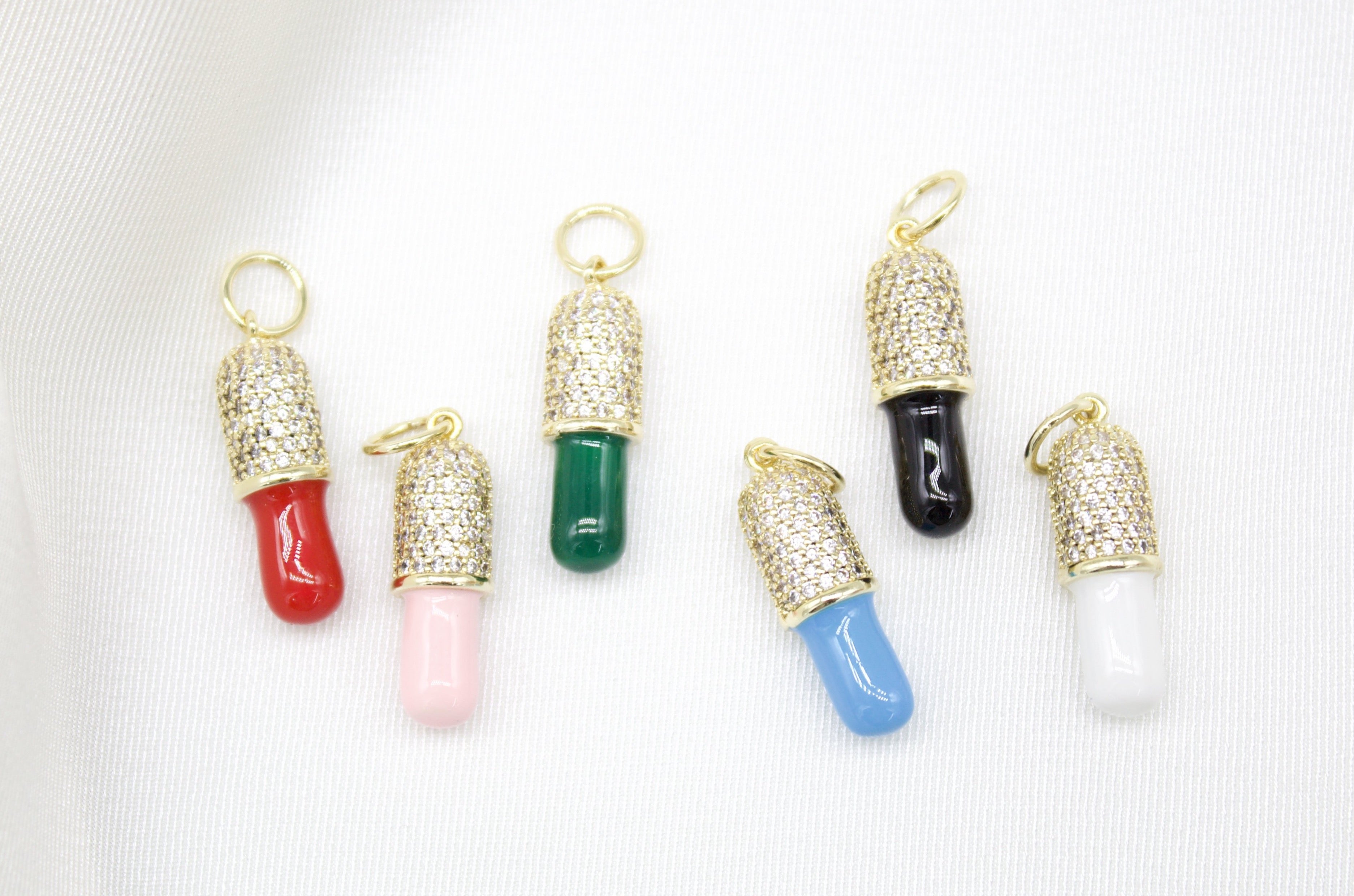 18K Gold Filled Enamel Pill Pendant With Micro Pave Cz stones (A183)